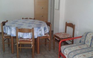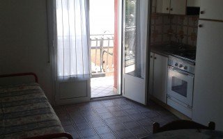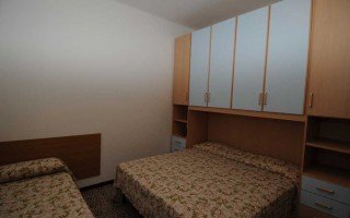 Appartamento al primo piano così composto: soggiorno con divano e TV, angolo cottura e terrazzo grande a L che va dal soggiorno alla camera, camera con 3 letti, bagno finestrato, climatizzatore, 1 posto auto NON numerato.