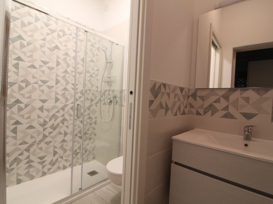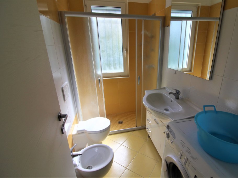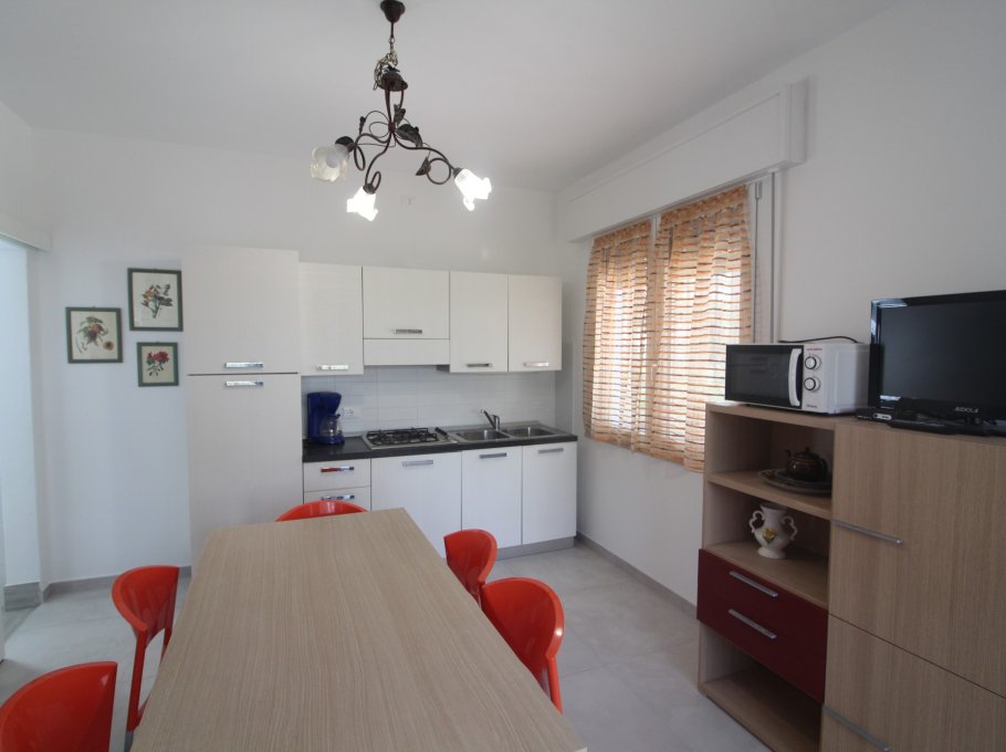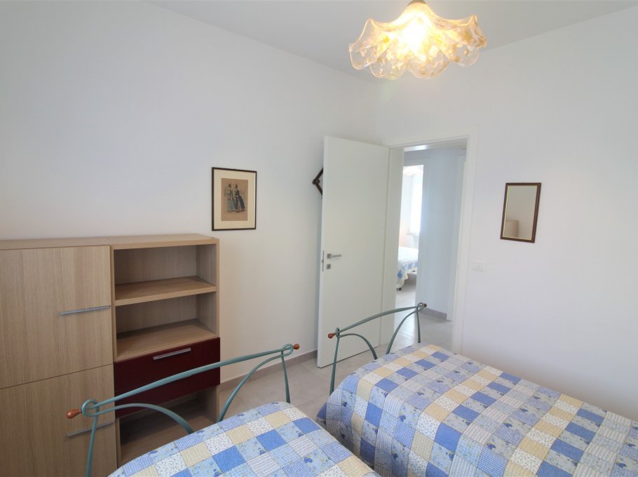 Typ D: living-dining room with double sofa bed and Kitchenette with induction hob, 1 double bedroom, 2 rooms each one with two beds, 2 bathrooms with shower/WC, terrace with garden furnishings. For 6-7 people. Ideal for families with children - air conditioning unit - washing machine - dish washing machine - TV - Optic fiber Wi-Fi. Energy class A1 (119.49kWh/sq m year). CIN IT030049C2DINE7IYN