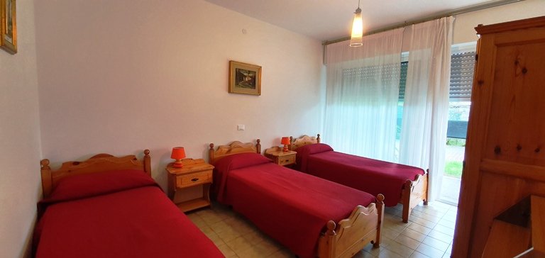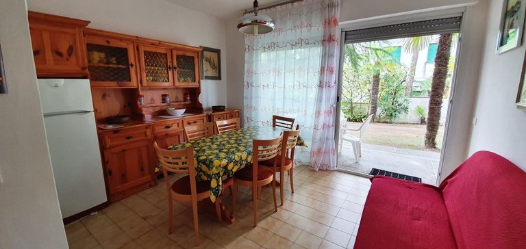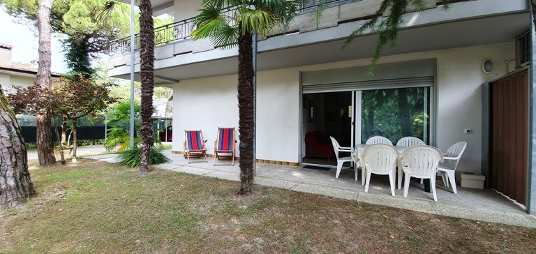 casa con 4 appartamenti in zona tranquilla, ma centrale di Lignano Pineta. L'appartamento è situato al piano terra ed è composto da soggiorno, angolo cottura, una camera matrimoniale, una camera con tre letti singoli, bangno con doccia, terrazzo. Giardino condominiale e posto auto.