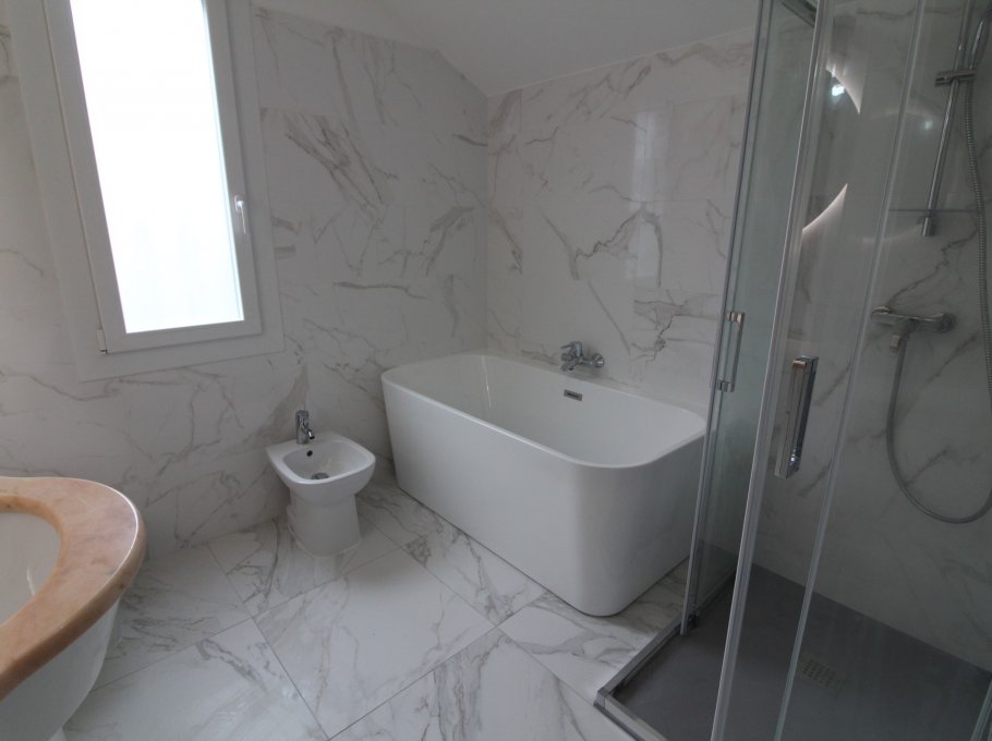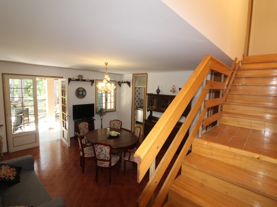 Type E: on the garden level living-dining room with double sofa bed, kitchen, 1 little bathroom, patio with garden furnishings, fenced garden; on the raised level 1 double bedroom, 1 bedroom with two single beds, 1 bathroom with tub, balcony; mansard with 1 double bedroom, 1 bathroom with tub, balcony; on the groundfloor one small living-room with armchairs. For 6-8 people. Ideal for families with children - dishwasher - washing machine - microwave oven - TV - air conditioning unit.