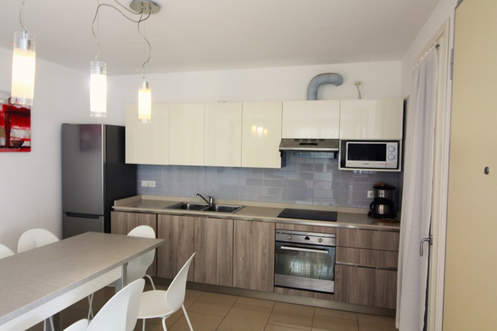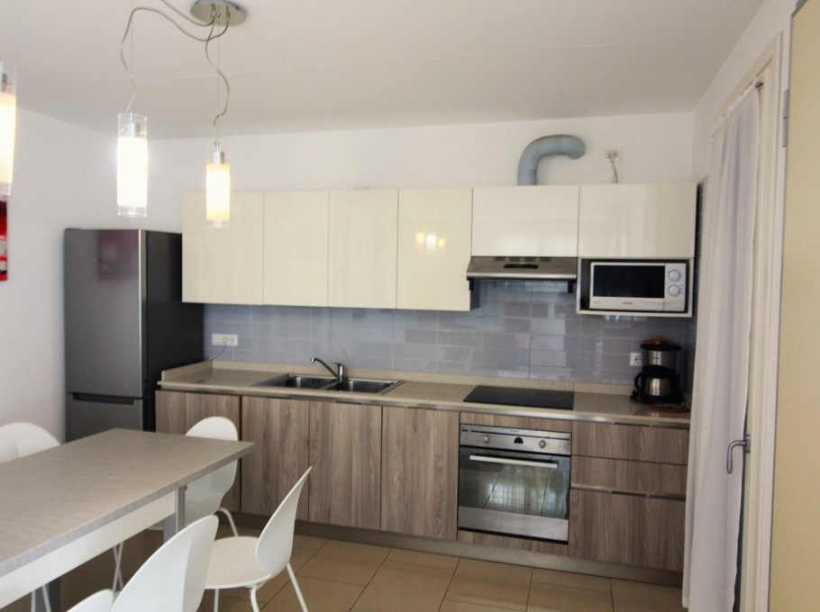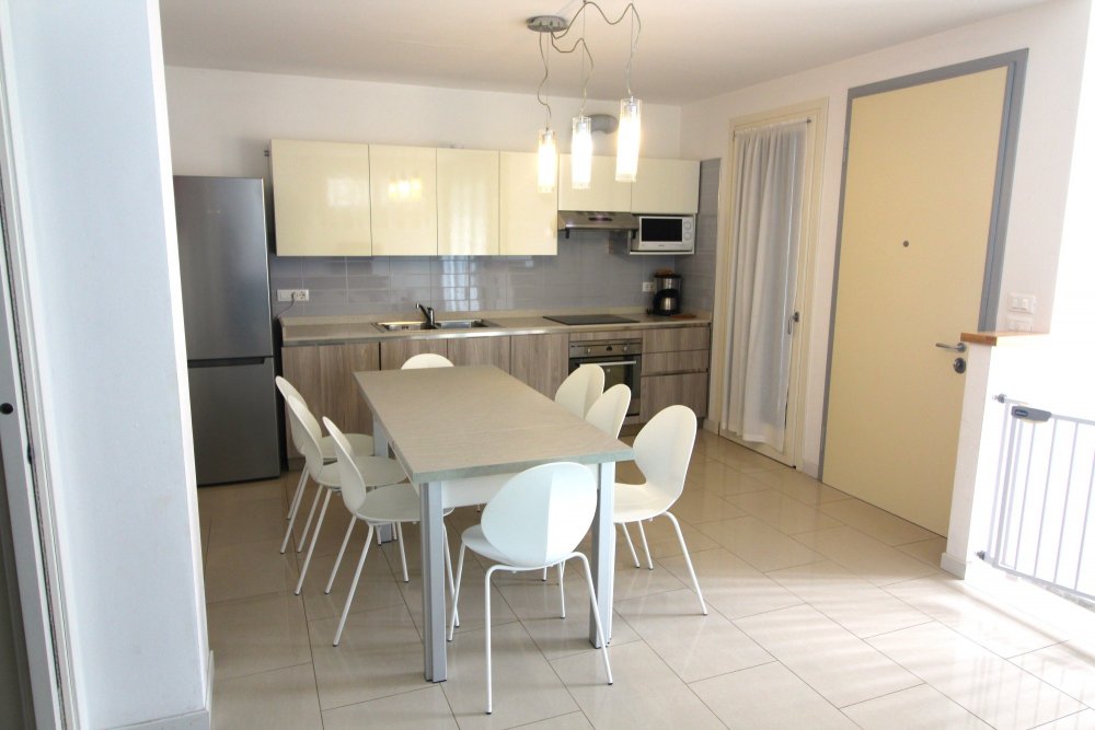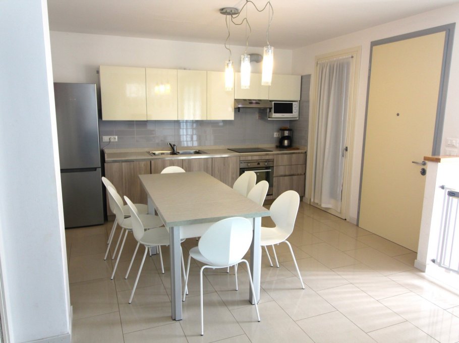 Type E: on the upper floor spacious and luminous living/dining room with open space kitchen, 1 bathroom with bathtub/WC, 1 double bedroom, 1 bedroom with 2 single beds, terrace; on the ground floor 2 light and friendly bedrooms each with 2 single beds, 1 bathroom with shower/WC, big terrace, garage and laundry. Flat roof with solarium. For 8 people. Air conditioning unit - heating. Beach service (1 sun umbrella, 1 sun chair and 1 sun bed) provided on request and subject to availability. Energy class B (78.82 kWh/sq m year). CIN: IT030049C2DQPI3I9O