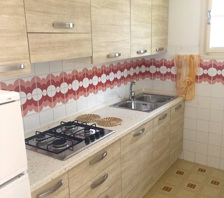 Ground floor apartment with 2 bedrooms with two beds, living room with kitchenette, 1 bathroom, TV, air conditioning, garden, parking space.
