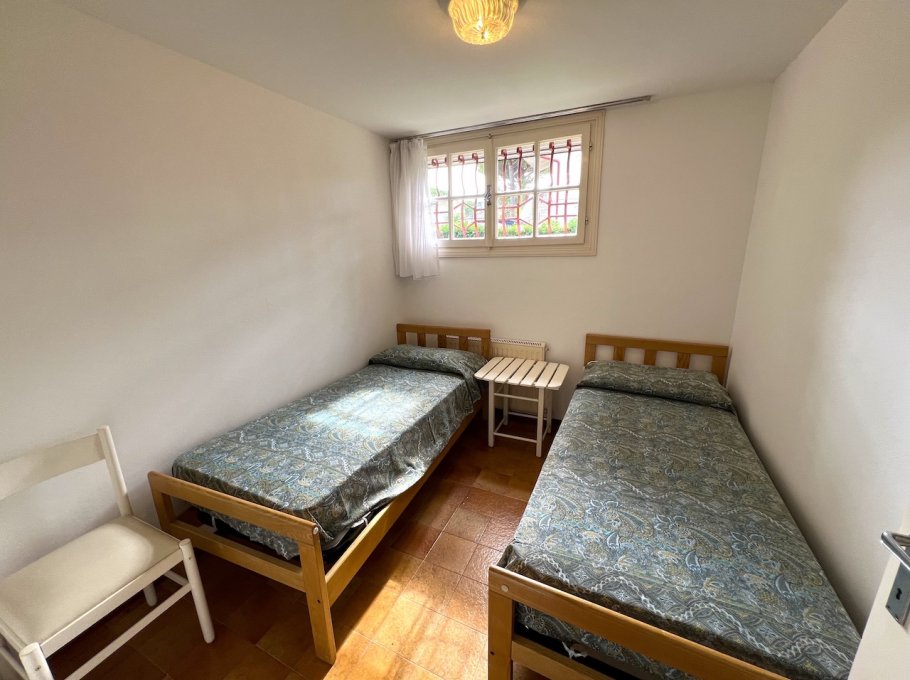 Ground floor apartment with 3 bedrooms with 2 beds, living room, kitchen, 1 bathroom, TV, air conditioning, garden, parking space.