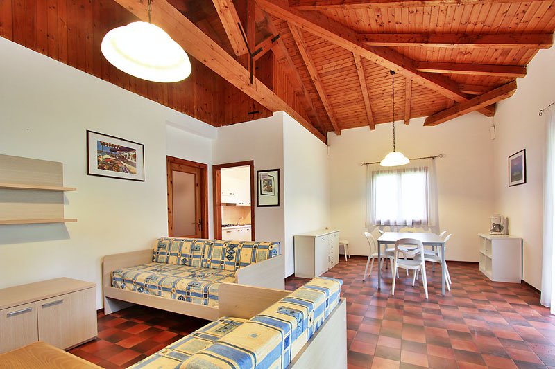 Big apartment on the mezzanine floor with spacious living room with entrance to the patio with fireplace, 2 single sofa beds, kitchenette, windowed bathroom with box shower, double room with windowed bathroom with box shower, 2 rooms, each with 2 beds (one of these with balcony), fenced garden. Comforts: tv-sat, air conditioning, washing machine, microwave. wi-fi anti-bugler allarm