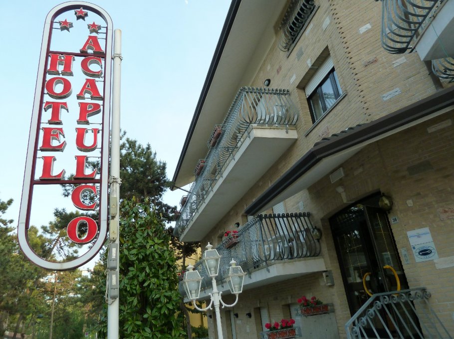 in the green, next to the sea and not far from Aquasplash Fun-Park, Gulliverlandia, Thermal Baths, Golf Club, Marina Uno , the Arena Alpe Adria,Punta Verde Zoo - Park, the Riding-ground and Hemingway Park. The Hotel offers 24 bedrooms with private bathrooms, TV sets with satellite programs,telephone, heating & air condition, safe and terrace.Hotel guests can also use a private car-parking, where they can lodge their cars during theirstay at the Acapulco.