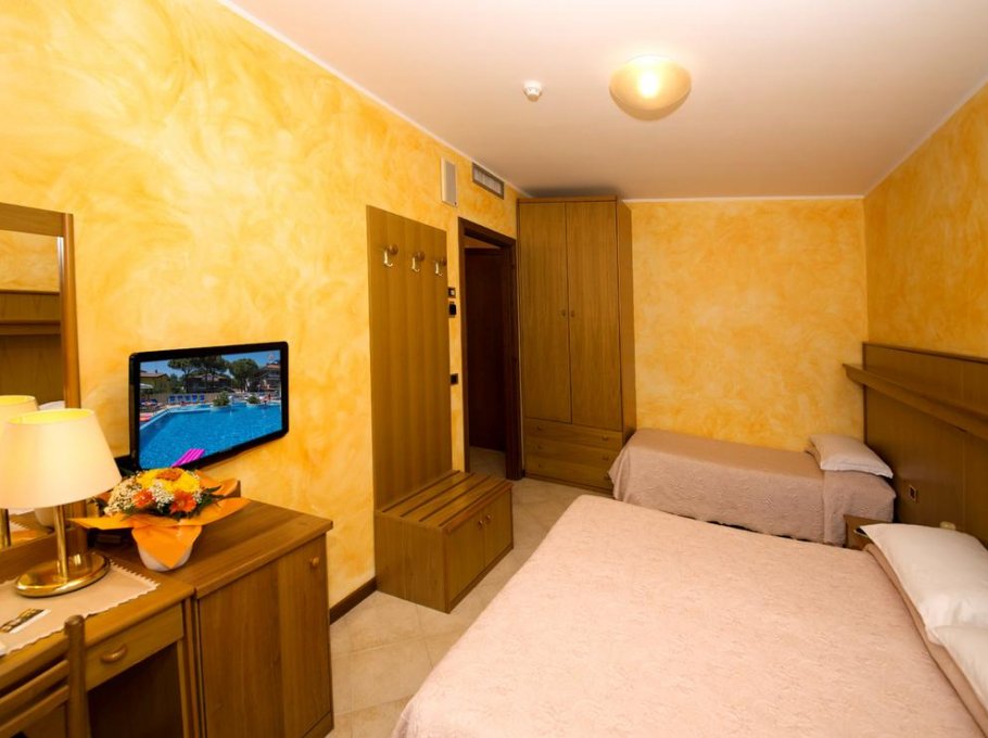 Le sue 34 camere, tutte con servizi privati, sono insonorizzate e dotate di aria condizionata, riscaldata, TV-sat, telefono a selezione diretta, Wi-Fi access ed ampio terrazzo prendisole. Arredate con gusto e razionalità.