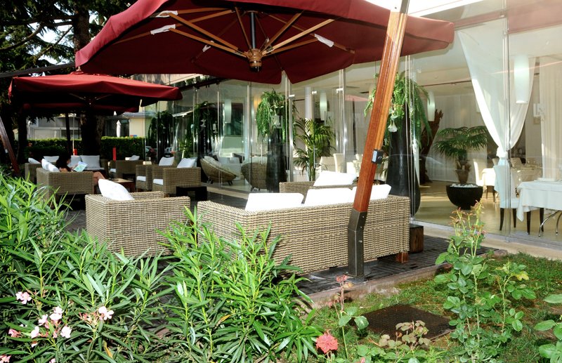 Hotel REX is a modern design boutique first class Hotel, located 150 metres from the beach, in the mist of the green in the luxurious part of Lignano Pineta.