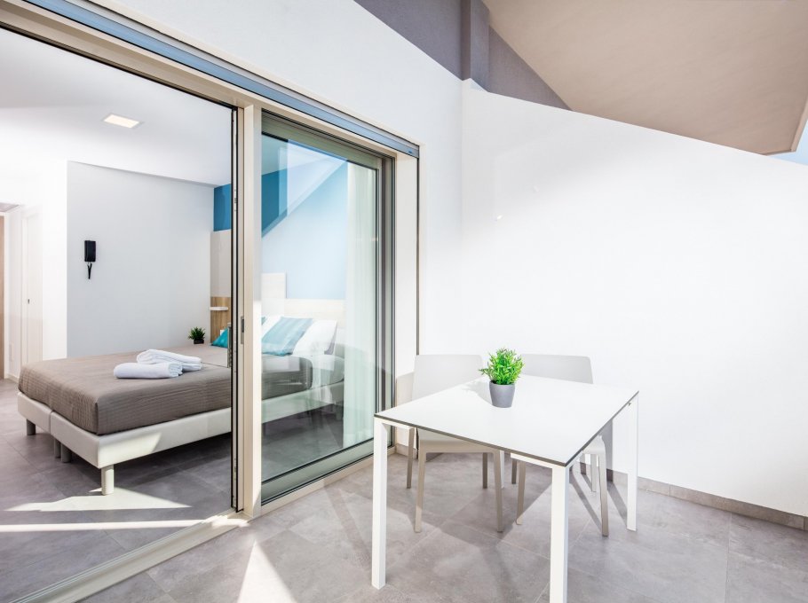 They are furnished with care and attention to detail with modern and design furnishings and are equipped with every comfort. They have a King Size double bed, a single foldaway bed, a bathroom with a shower box and a large terrace with outdoor furniture.