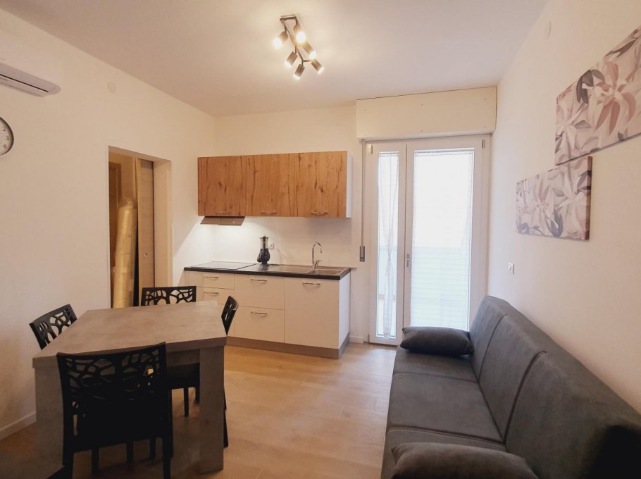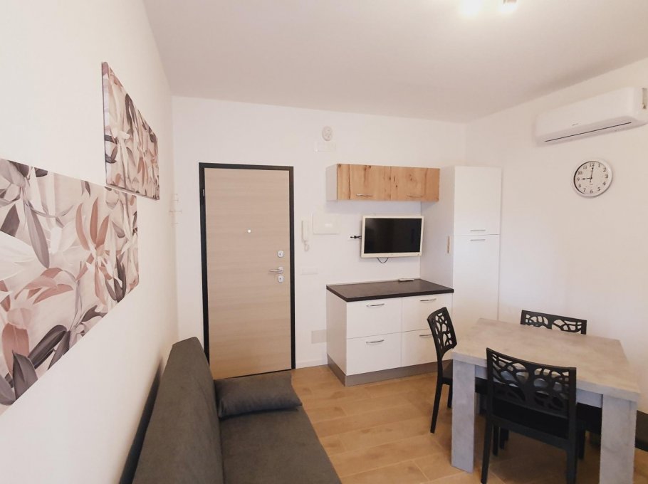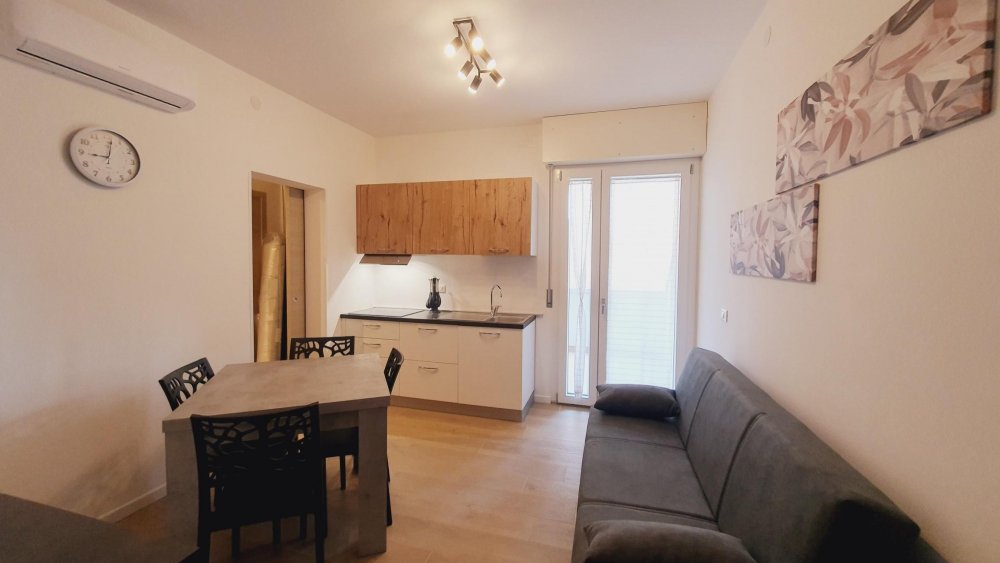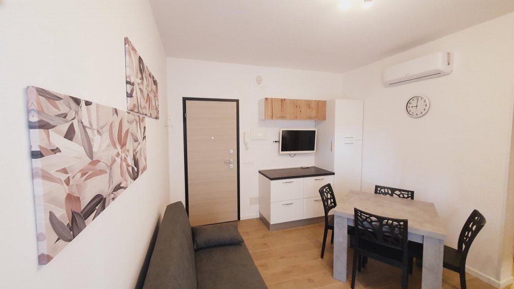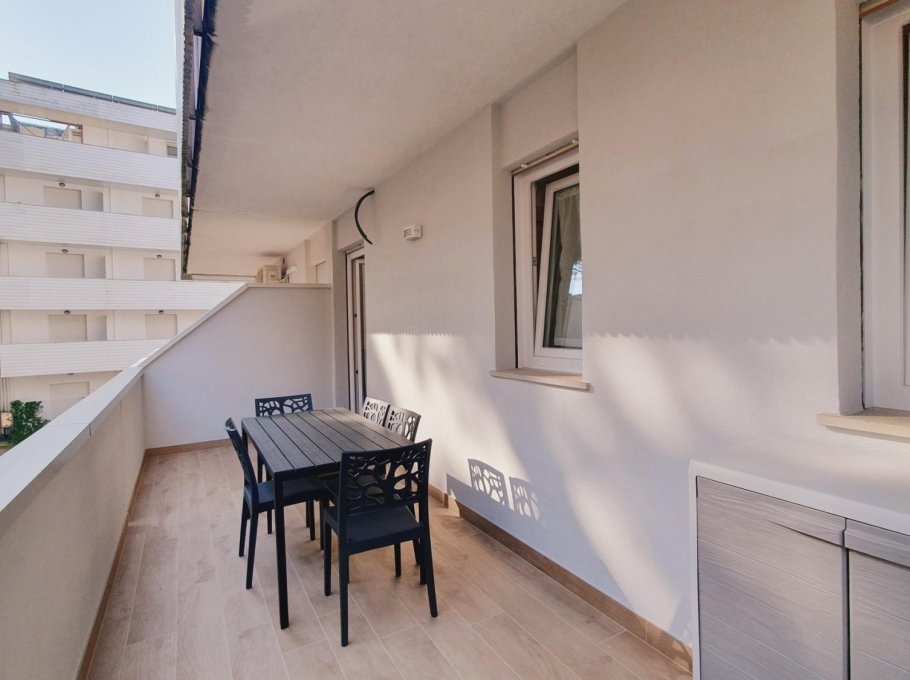 The apartment is at ELDORADO Residence which is a small building of 3 floors and it's located in via dell'Arenile, 4 in Lignano Sabbaidoro near the beach. The apartment is on the first floor and is composed with 1 sleepingroom with 3 beds, livingroom with TV and couch for 1 person, kitchen with mikrowave, bathroom with shower-box. It's all new renovated with air conditioning, big balcony with washingmaschine and private-parking.