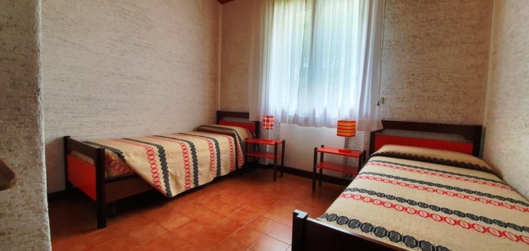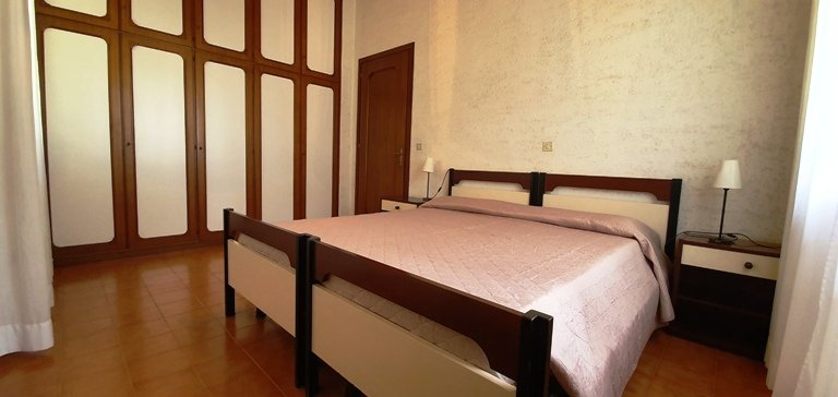 small villa circa 400 meter till the beach, composed of a small kitchen, 1 bedroom with double bed, 1 bedroom with 2 single bed, bathroom, parking area and garage. The garden is part of the villa and can be used alone.