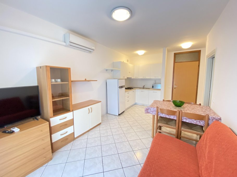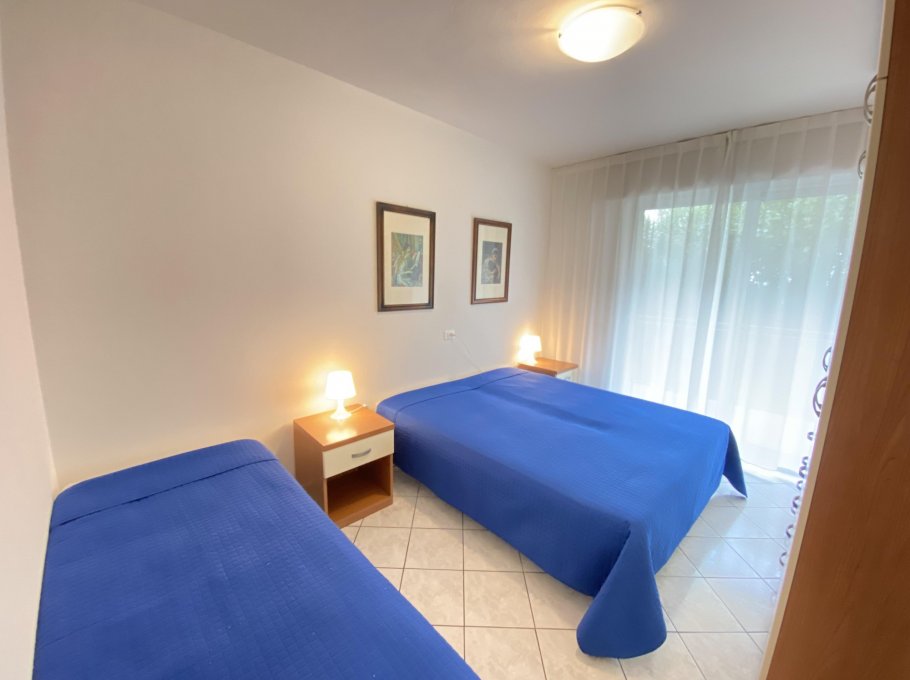 The apartment is at Residence La Zattera which is located at the beach promenade, near to the center of Lignano Sabbiadoro. This House have a small garden, 2 lift and private-parking. The apartment is on ground floor. The apartment is renovated with TV, microwave, air conditioning, and is composed with 1 sleepingroom with 3 beds, livingroom with double bedcouch, kitchen, bathroom with waschingmashine, balcony with seaview.