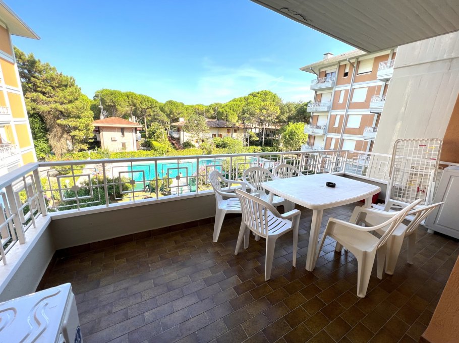 Residence in a quiet location with pool and lift (elevator). Apartment consisting of 2 bedrooms, living room with double-bed couch, kitchen, 2 bathrooms, terrace, 5 beds. Distance from sea: 200 meters, tv, air conditioning , washing machine