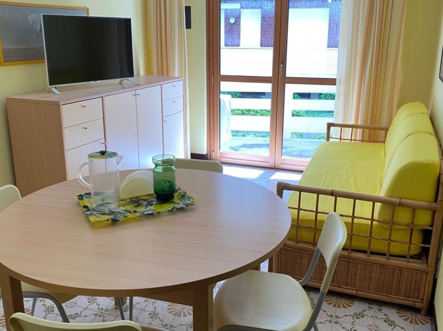 apartment on mezzanine floor, 1 bedroom with double bed, living room with divanbed x 2 persons, area cooking, bathroom with showerbox/WC/bidet, equipped balcony lateral side, TV/SAT, washing machin, microwave, safe, air-conditioning with fee, parking place not numbered (car standard). Initial and check out cleaning in each apartment are done according to COVID19 protocols. At all check out, our cleaning staff will replace every pillow covers and mattress covers with disposable, analgesic and anti-mite ones.
