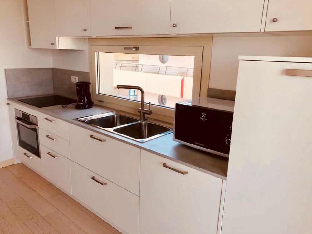 Each apartment is modern, elegant, it take all floor up and it composed with 2 sleeping rooms with 2 beds, large living room with double-sleeping-couch and panoramic view, Tv LCD, kitchen with microwave, waschingmaschine, 2 bathrooms with showerbox and balcony with sea view.