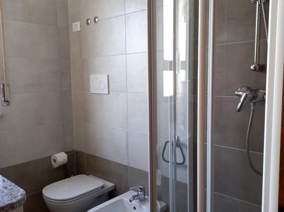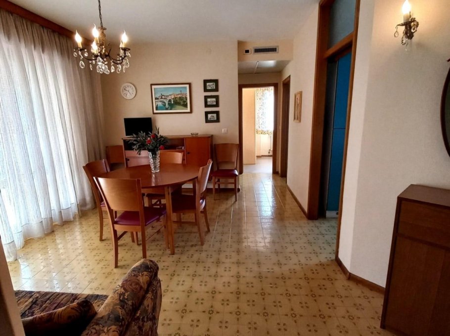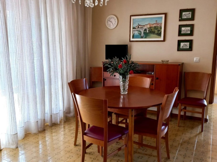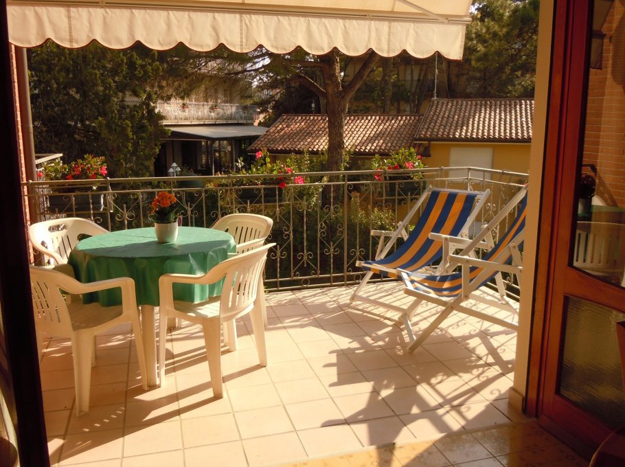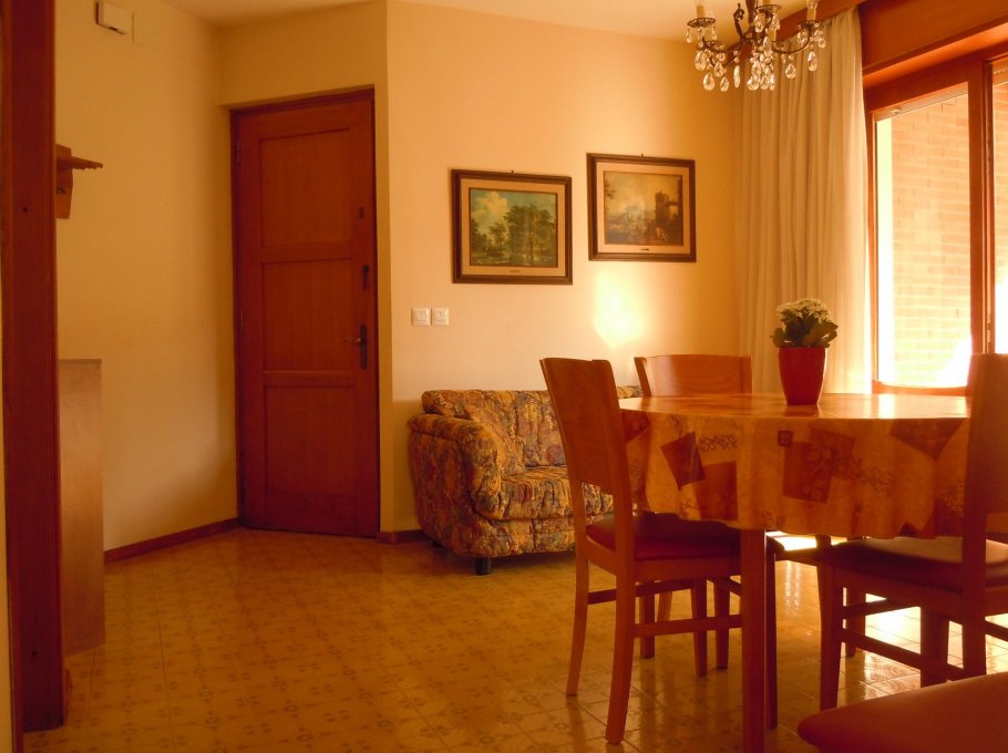 Appartamento al piano rialzato con breve gradinata, composto da cucinotto finestrato con 4 fuochi gas, forno elettrico, frigo con congelatore; soggiorno con divano e tv satellitare, camera matrimoniale, camera con 2 letti singoli, bagno con box doccia e phon, ampio terrazzo dove si può mangiare all’aperto, aria condizionata, cassaforte e lavatrice.