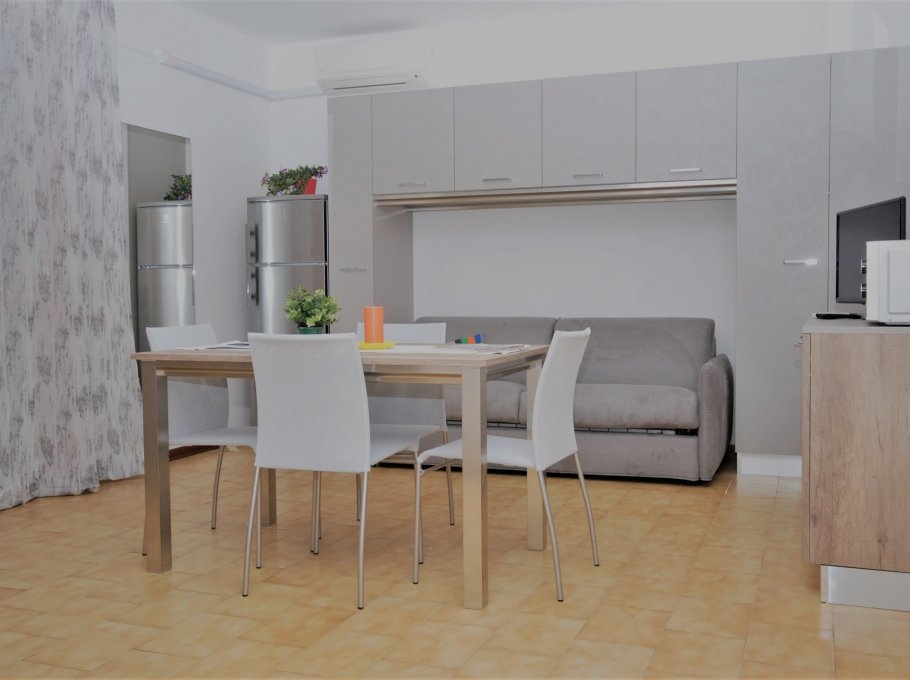 MONOLOCALE con 3 posti letto, composto da: soggiorno con 1 divano letto singolo e 1 divano letto doppio, angolo cottura, bagno, terrazzo.