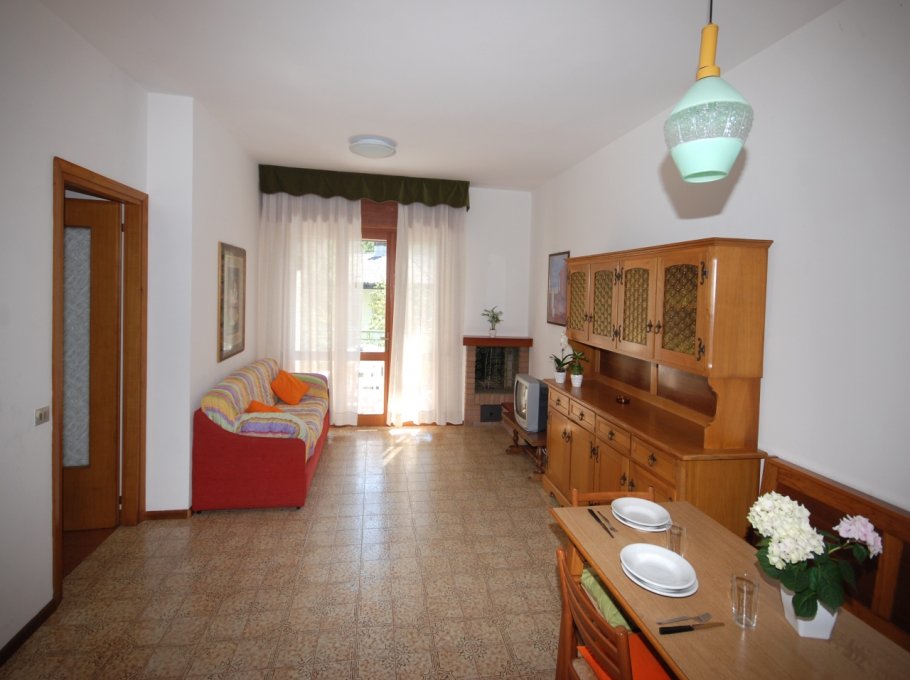 QUADRILOCALE con 6-7 posti letto, composto da: soggiorno con divano letto singolo, 1 camera matrimoniale con bagno, 1 camera a 2 letti, 1 camera con letto a castello, cucinino con lavatrice, bagno, terrazzo.