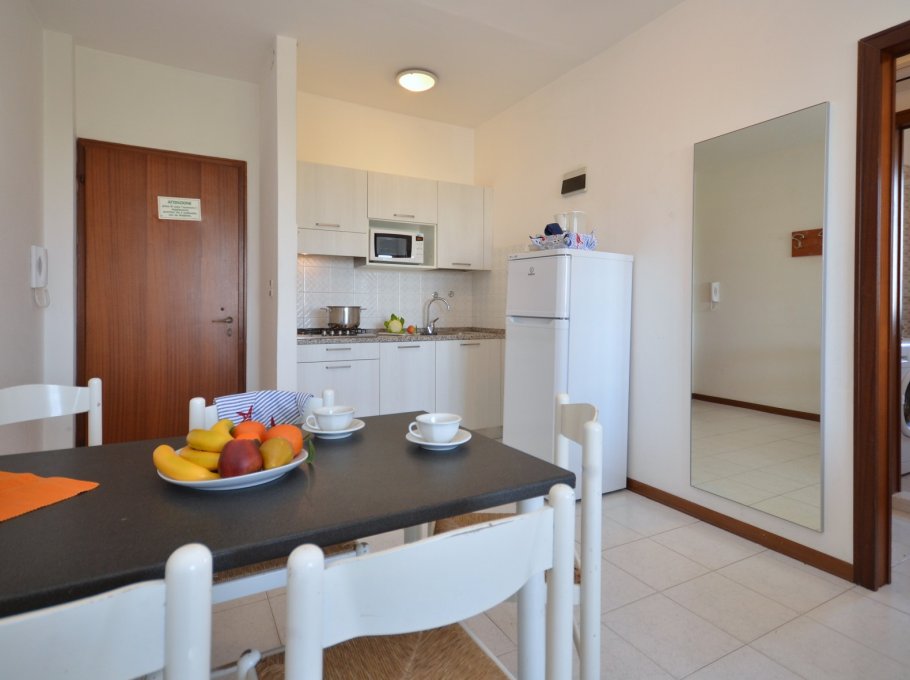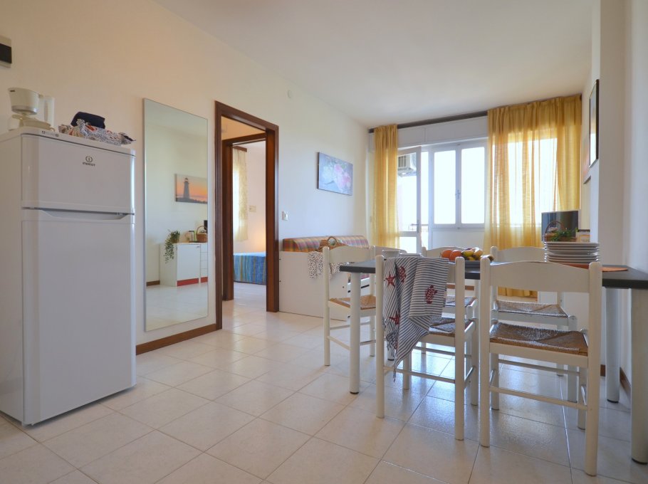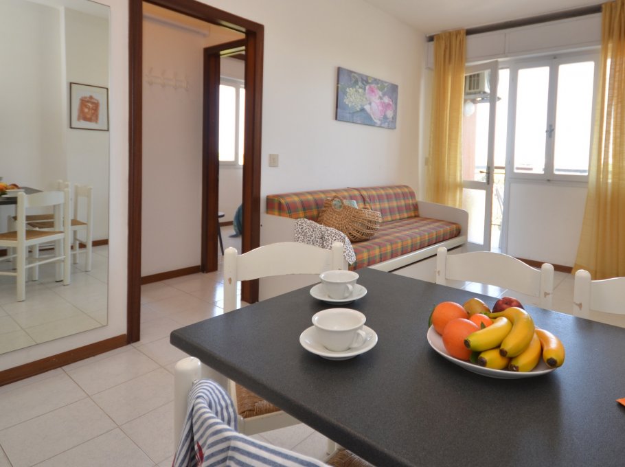 TRILOCALE con 4-6 posti letto composto da: soggiorno con divano letto doppio, 1 camera matrimoniale, 1 camera con due letti singoli, angolo cottura, bagno, terrazzo.