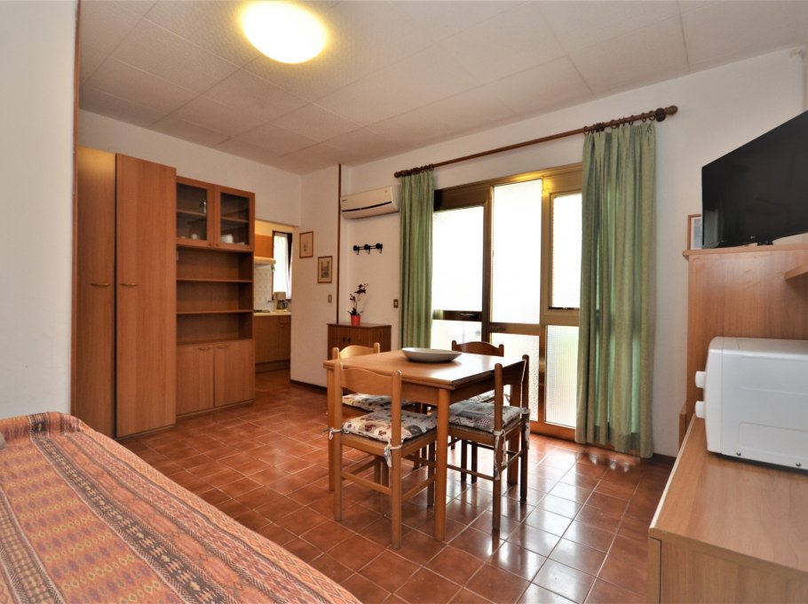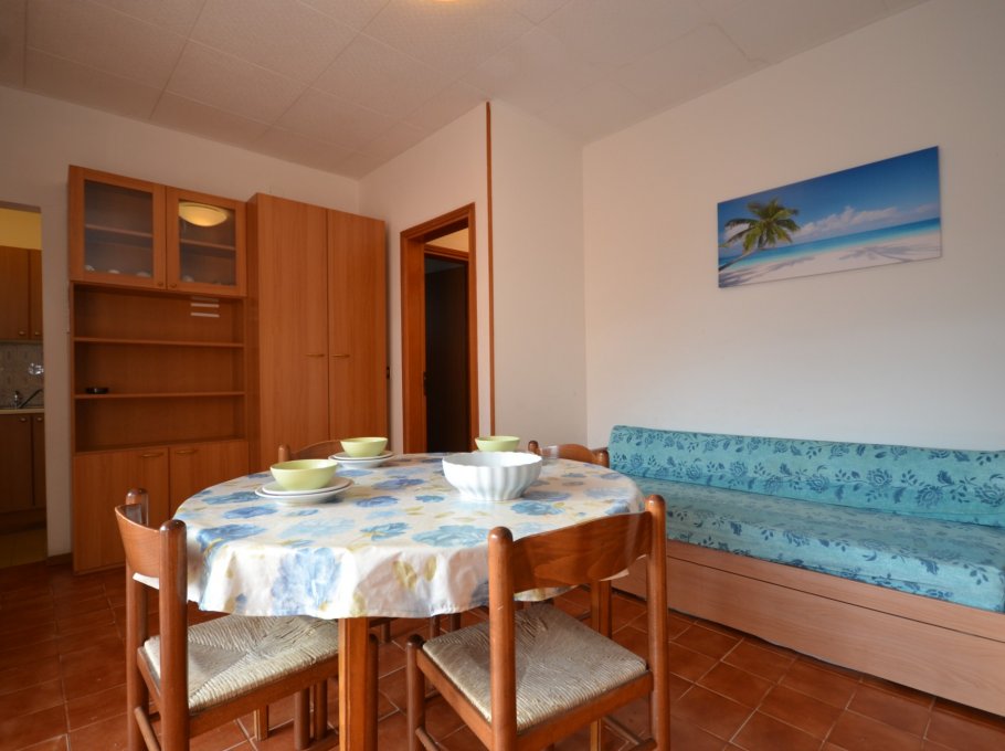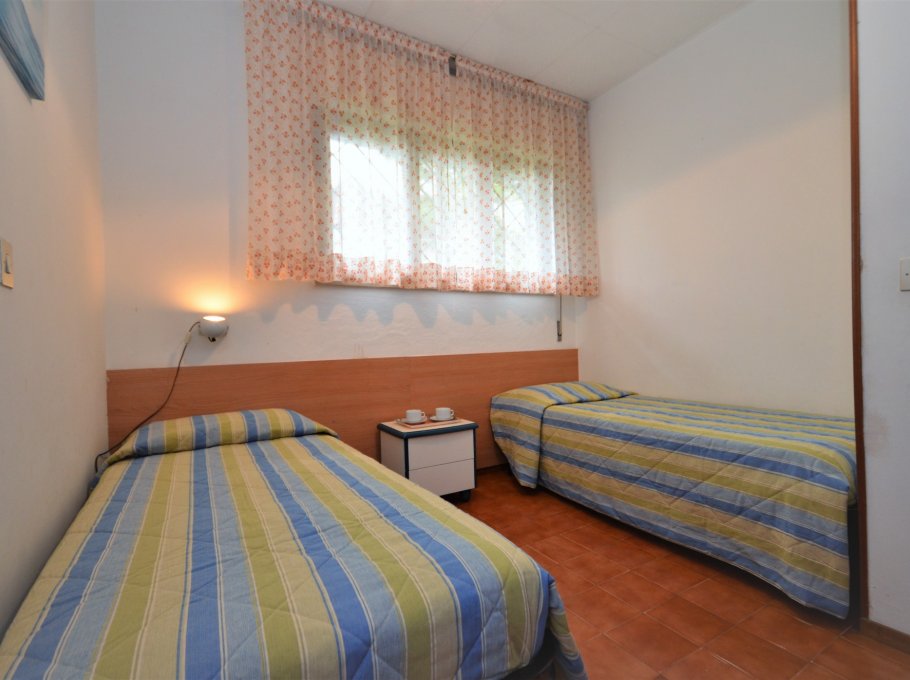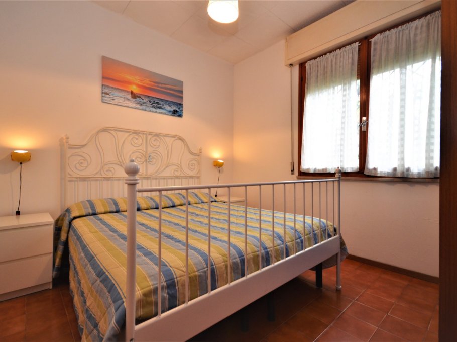 TRILOCALE con 4-6 posti letto, composto da: soggiorno con divano letto doppio, 1 camera con letto matrimoniale, 1 camera con 2 letti singoli unibili, angolo cottura, bagno, terrazzo, giardino. Aria condizionata. Prima fornitura di lenzuola e asciugamani inclusa.