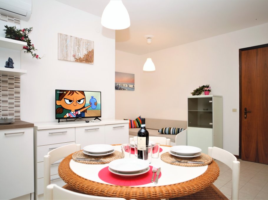 BILOCALE con 2-4 posti letto composto da: soggiorno con divano letto doppio, 1 camera con letto matrimoniale, angolo cottura con lavastoviglie , bagno con box doccia, lavatrice, terrazzo. Aria condizionata. Parcheggio numerato.