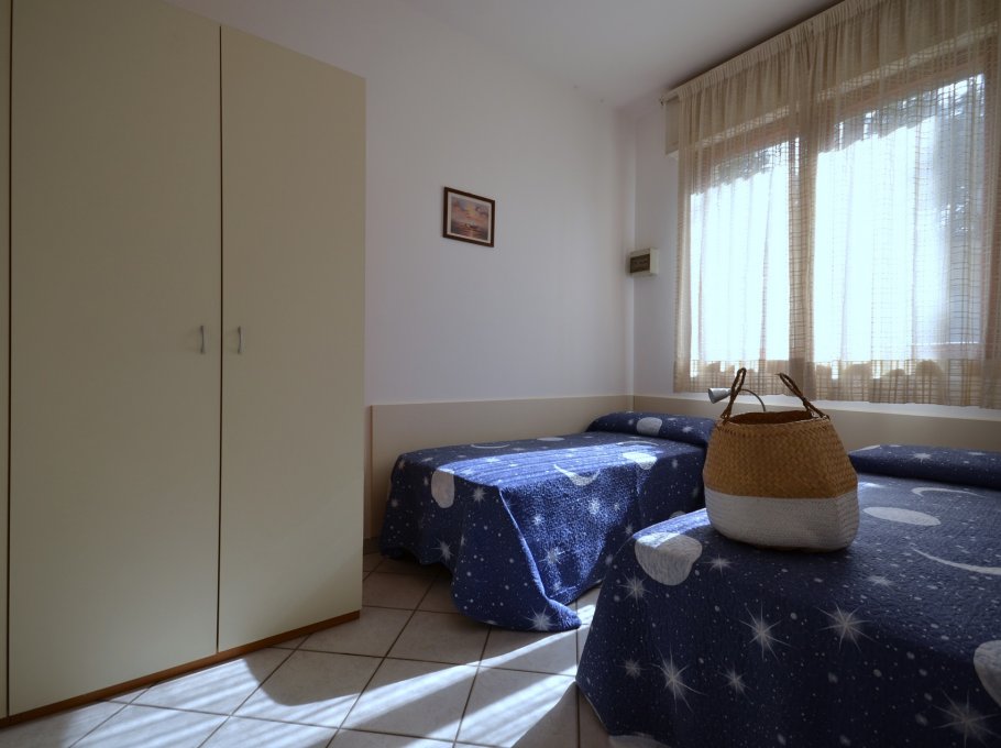 TRILOCALE con 4-6 posti letto, composto da: soggiorno con divano letto doppio, 1 camera con letto matrimoniale, 1 camera con 2 letti, angolo cottura, bagno, giardino con caminetto per barbecue.