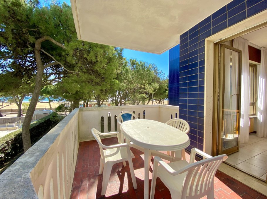 Appartamento situato al primo piano fronte mare composto da una camera con letto matrimoniale e letto singolo, camera con letto a castello, ampio soggiorno con angolo cottura, bagno con box doccia, terrazzo, posto auto numerato. Con climatizzatore e lavatrice. CIN CODE: IT030049C24ZKQAZPO