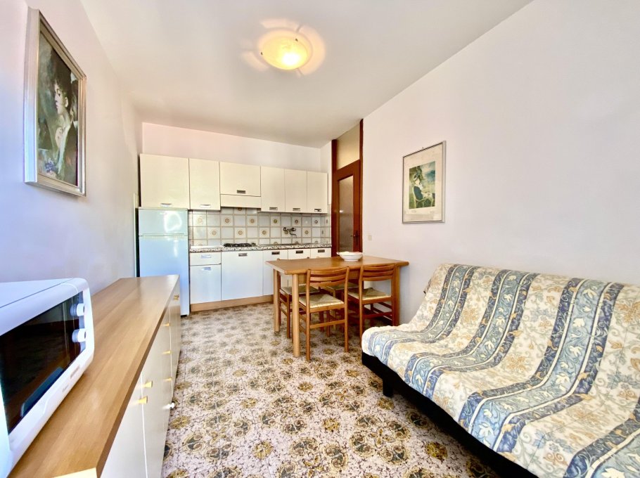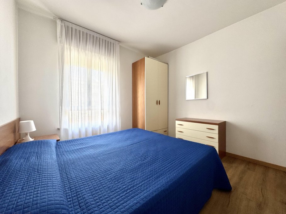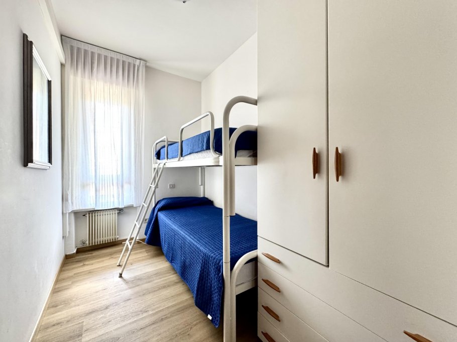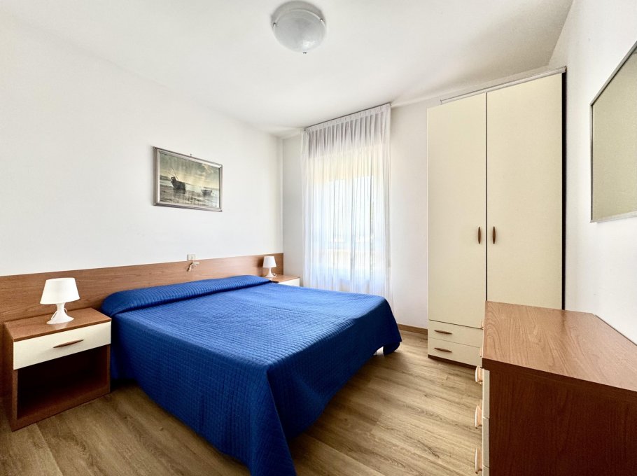 Appartamento al secondo piano composto da camera con letto matrimoniale, camera con letto a castello, soggiorno con divano letto matrimoniale, angolo cottura, bagno con box doccia, terrazzo. Con climatizzatore e lavatrice. Posto auto numerato. CIN CODE: IT030049C2D3CZF6DA