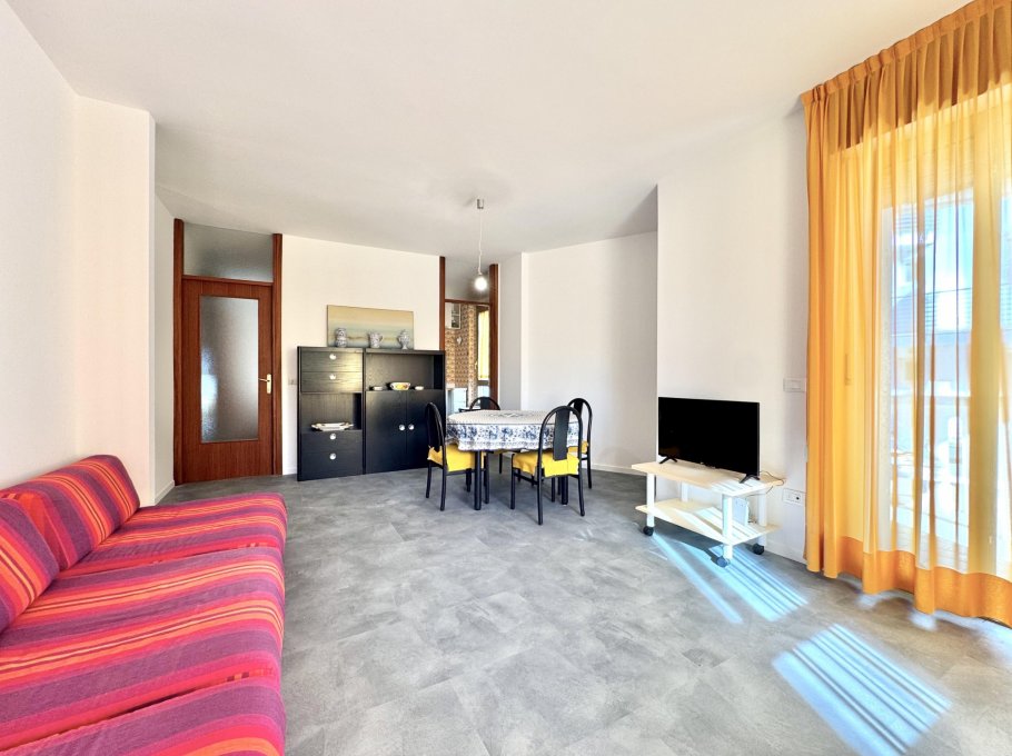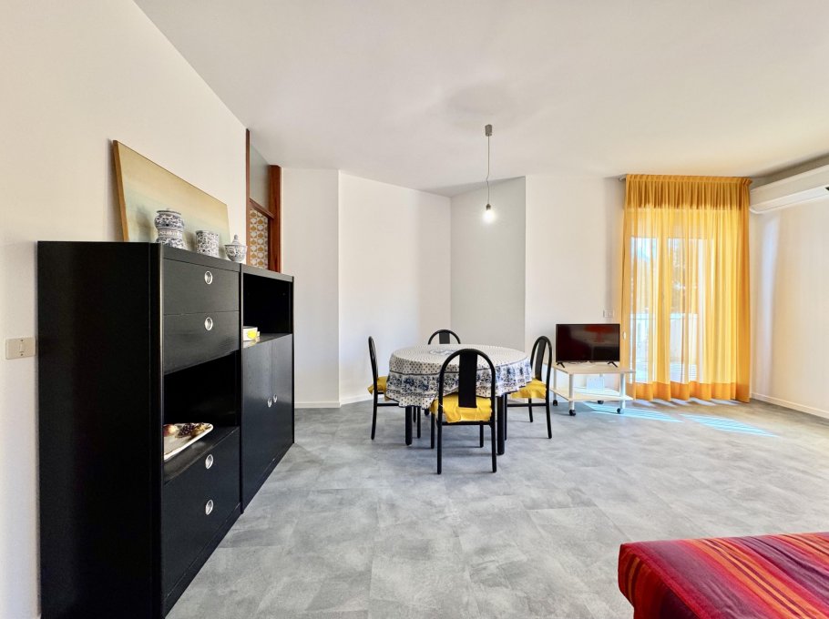 Appartamento situato al secondo piano fronte mare composto da ampio soggiorno con divano letto matrimoniale, cucinotto separato, una camera con letto matrimoniale, una camera con letto a castello, bagno con box doccia, terrazzo. Posto auto numerato. Con climatizzatore e lavatrice. CIN CODE: IT030049C2Y8L66RSB
