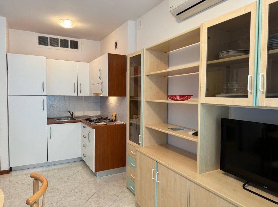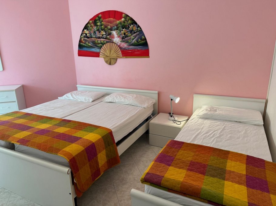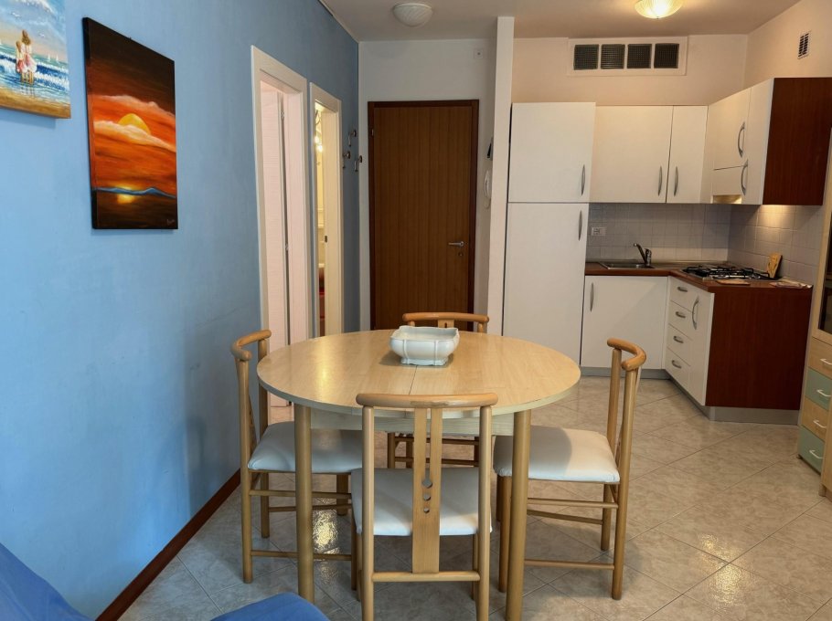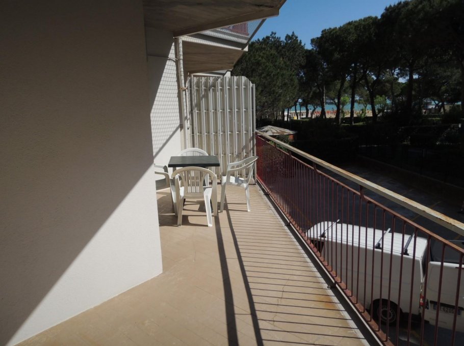 Condominio fronte mare con piscina, in direzione ufficio spiaggia 17; l’appartamento è al 1°piano, lato ovest, da cui si intravvede il mare, composto da ampia camera da letto con letto matrimoniale e letto singolo, soggiorno con angolo cottura e divano letto doppio, bagno con box doccia; c’è inoltre l’aria condizionata (a richiesta, al prezzo di € 35,00 a settimana) e posto auto.