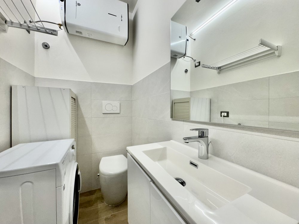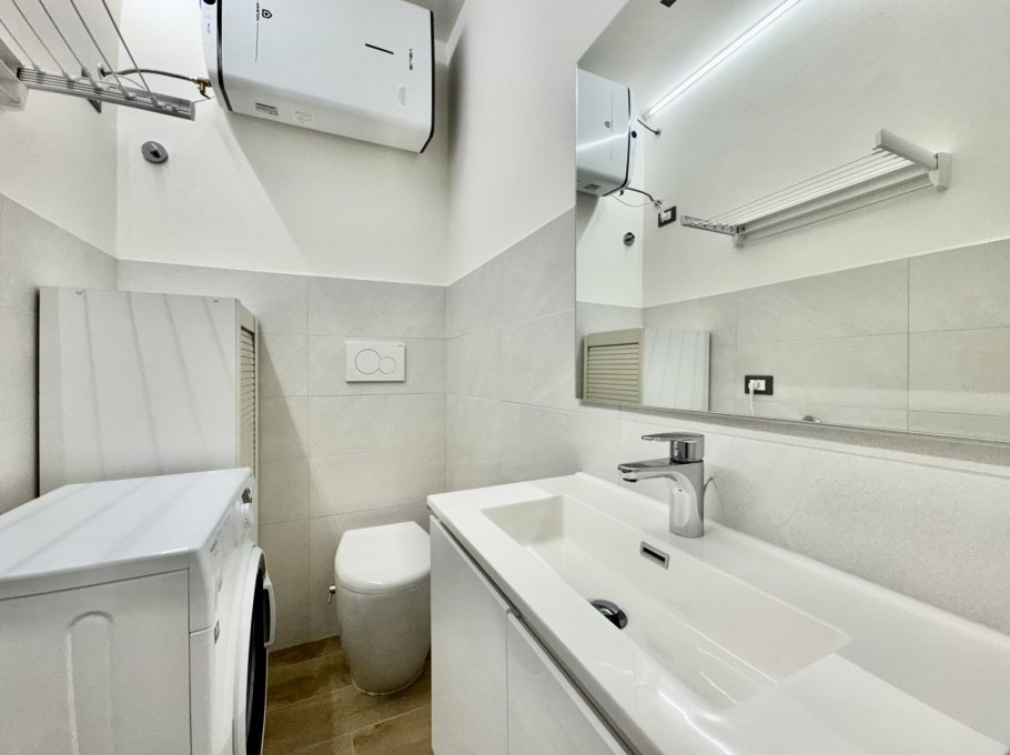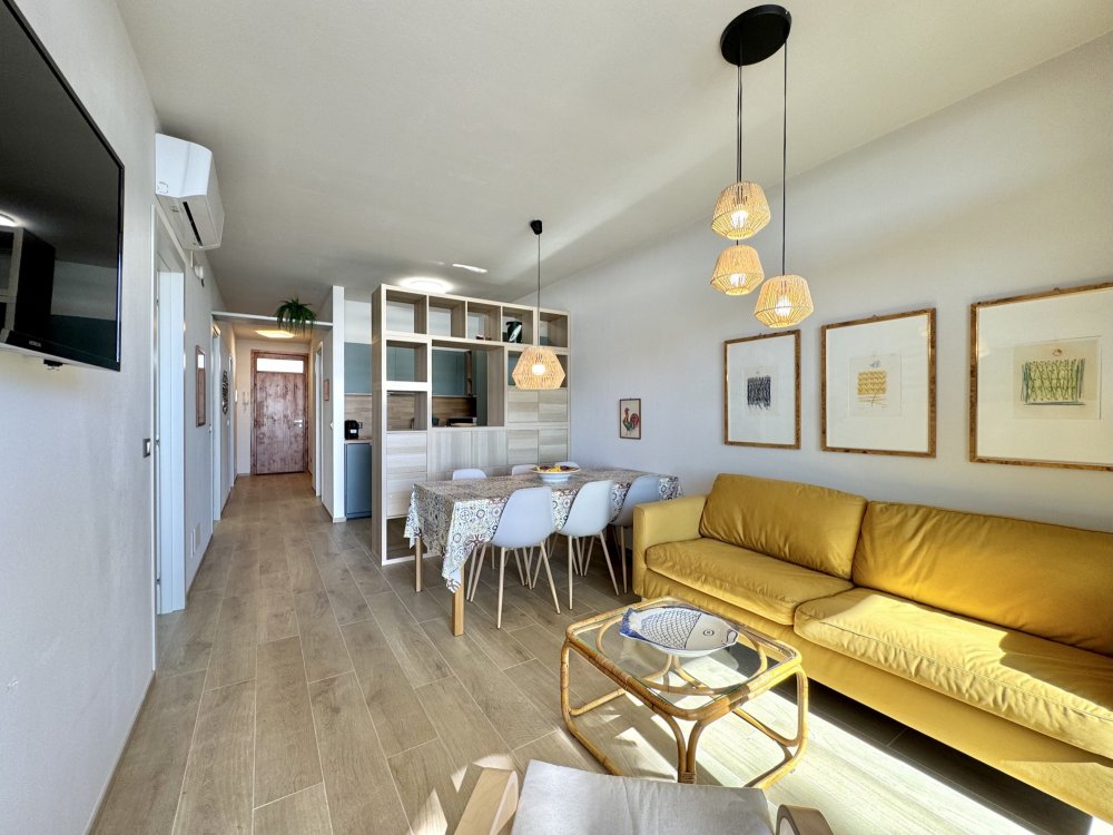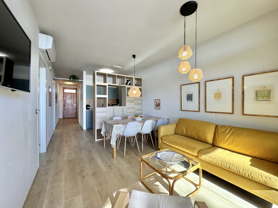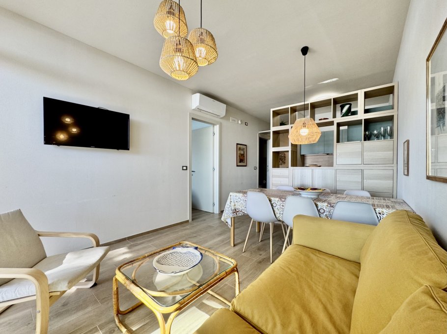 Appartamento completamente ristrutturato composto da soggiorno con angolo cottura, una camera matrimoniale, una camera con due letti, una camera singola, due bagni, ampio terrazzo con vista mare. Arredamento moderno e confortevole completo di lavatrice, lavastoviglie, aria condizionata. Posto auto riservato. CIN CODE: IT030049C27WBZLP4B