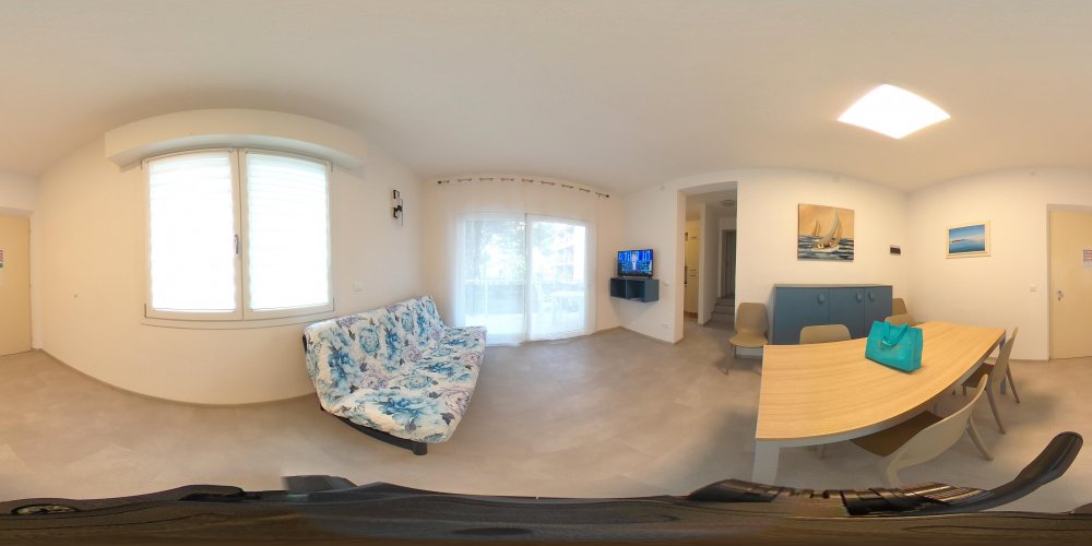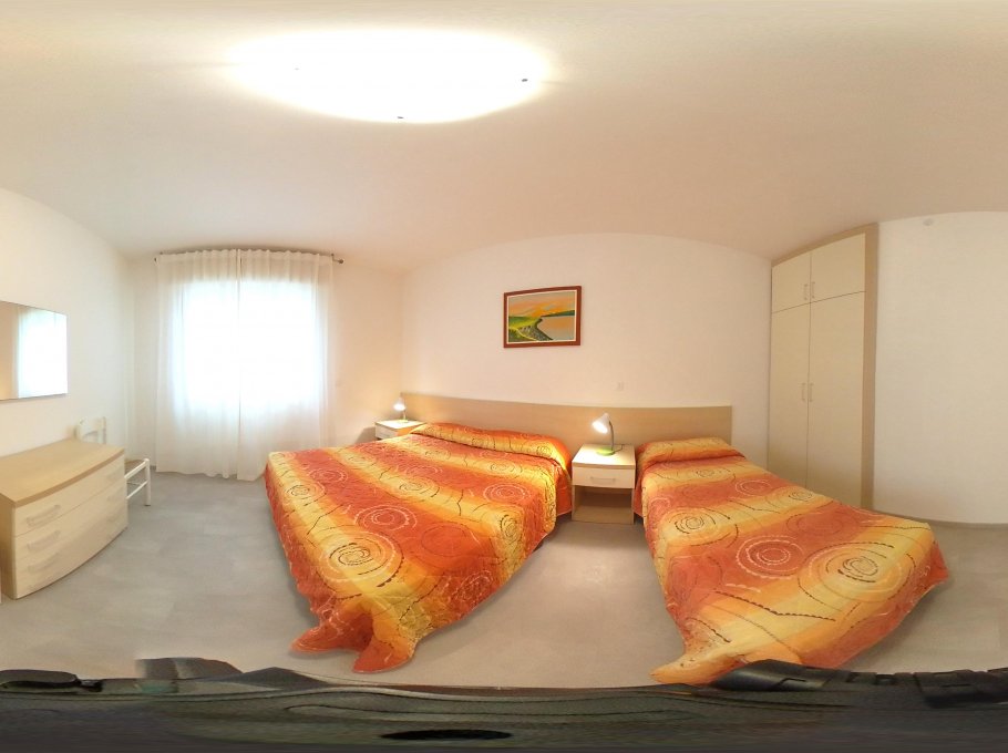 Quadrilocale composto da un soggiorno con un divano, tv e microonde, cucinino separato, camera a tre letti (uno matrimoniale più uno singolo), camera doppia, camera singola, bagno con box doccia/bidet/wc ed un balcone arredato. Aria condizionata e pulizie finali sono compresi nel prezzo. Nel regolamento di locazione dell’agenzia sono indicate tutte le modalità dei servizi di cui sopra. Misure posto auto: 520X230X180