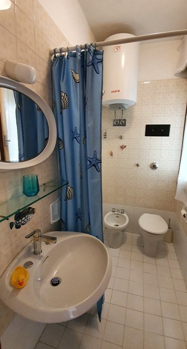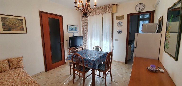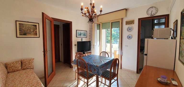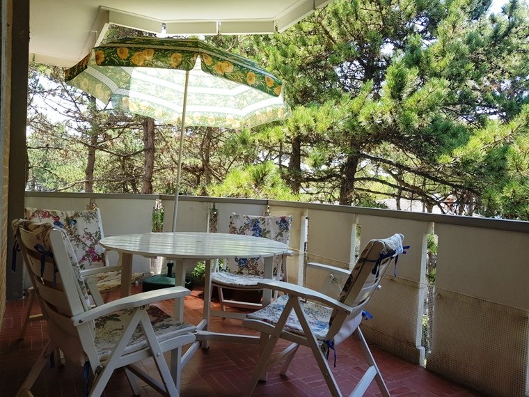 appartamento in piccolo condominio in mezzo al verde della pineta, a duecento metri dalla spiaggia, composto da soggiorno con angolo cottura, ampio terrazzo, una camera matrimoniale, cameretta, terrazzino, bagno finestrato con doccia, dotato di aria condizionata e lavatrice.Classe Energetica G, prestazione energetica globale 209 kWh/mq anno ; EPe 21,1 ; EPi 180