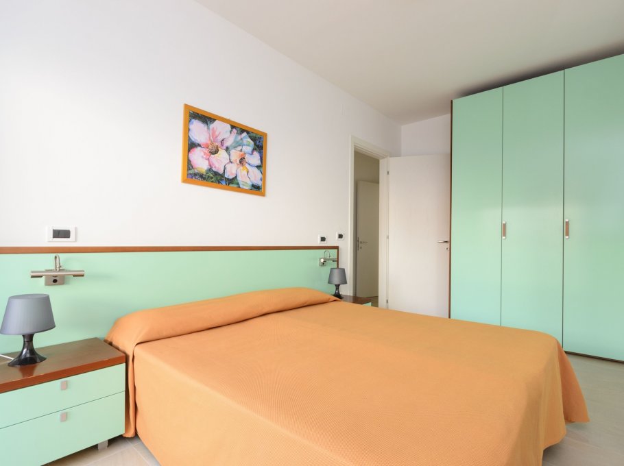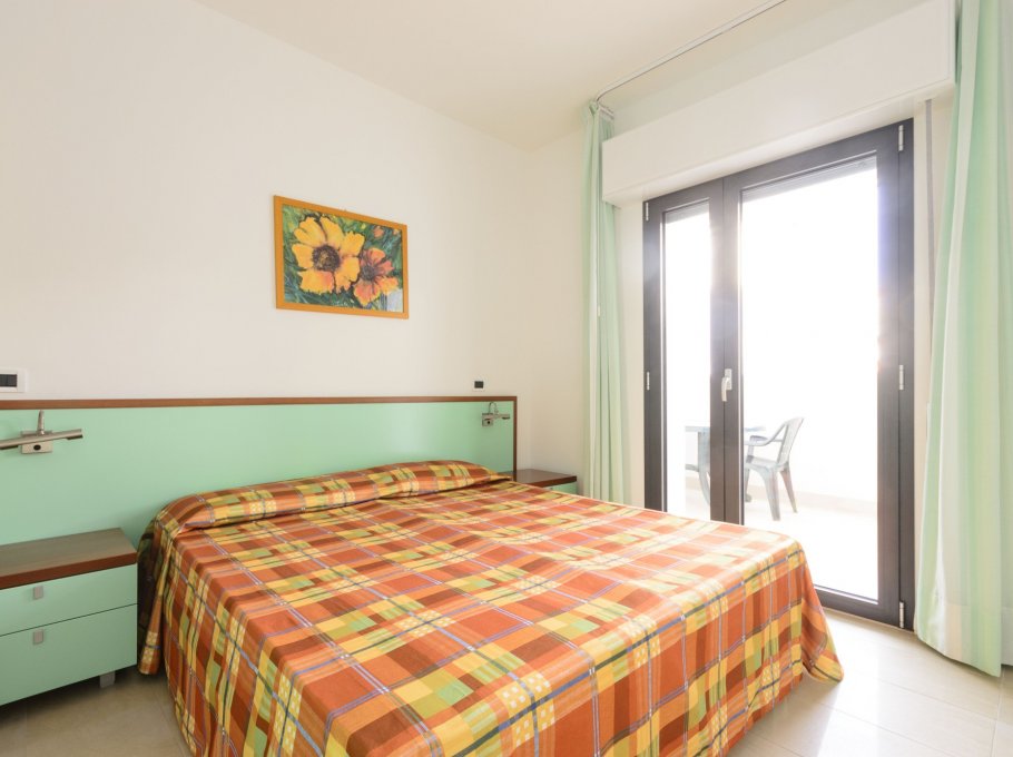 Tipo C. Soggiorno con angolo cottura e divano letto doppio, camera matrimoniale, camera a 2 letti, bagno con box doccia, balcone attrezzato con mobili per poter pranzare. Max 6 pax. 55 mq