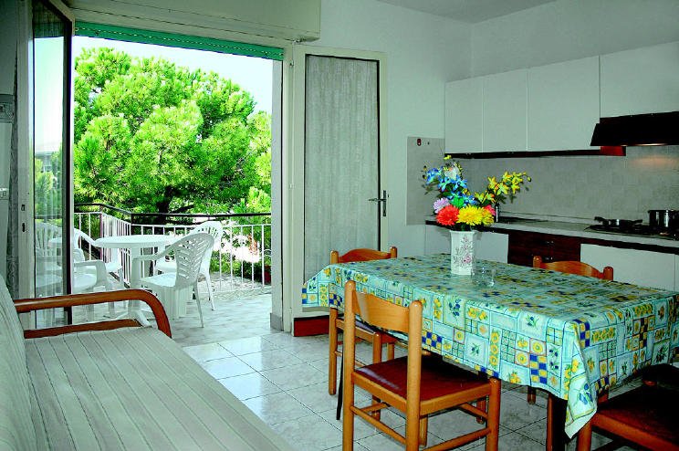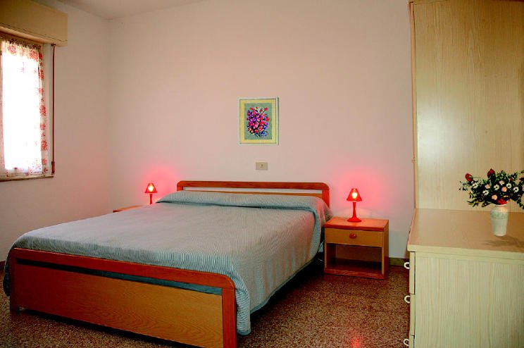 Tipo B: 4/5 persone - Appartamento al 1° piano (senza ascensore) composto da una camera matrimoniale + 1 letto a castello, soggiorno con angolo cottura e divano letto, bagno con doccia, piccolo terrazzo, parcheggio riservato. L'appartamento è inoltre dotato di aria condizionata.