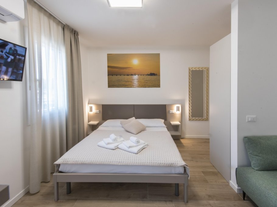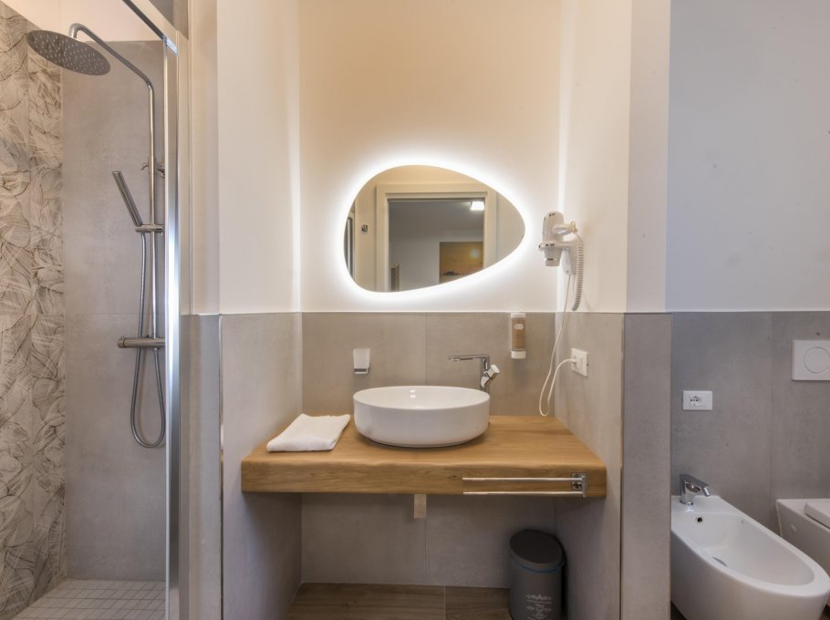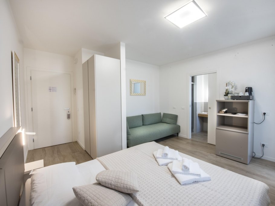 Camera tripla ristrutturata e dotata di ogni comfort. Letto matrimoniale, armadio e scrivania con bollitore e macchina caffè Nespresso, ampio bagno con spazioso box doccia e kit di cortesia. Lenzuola e asciugamani.