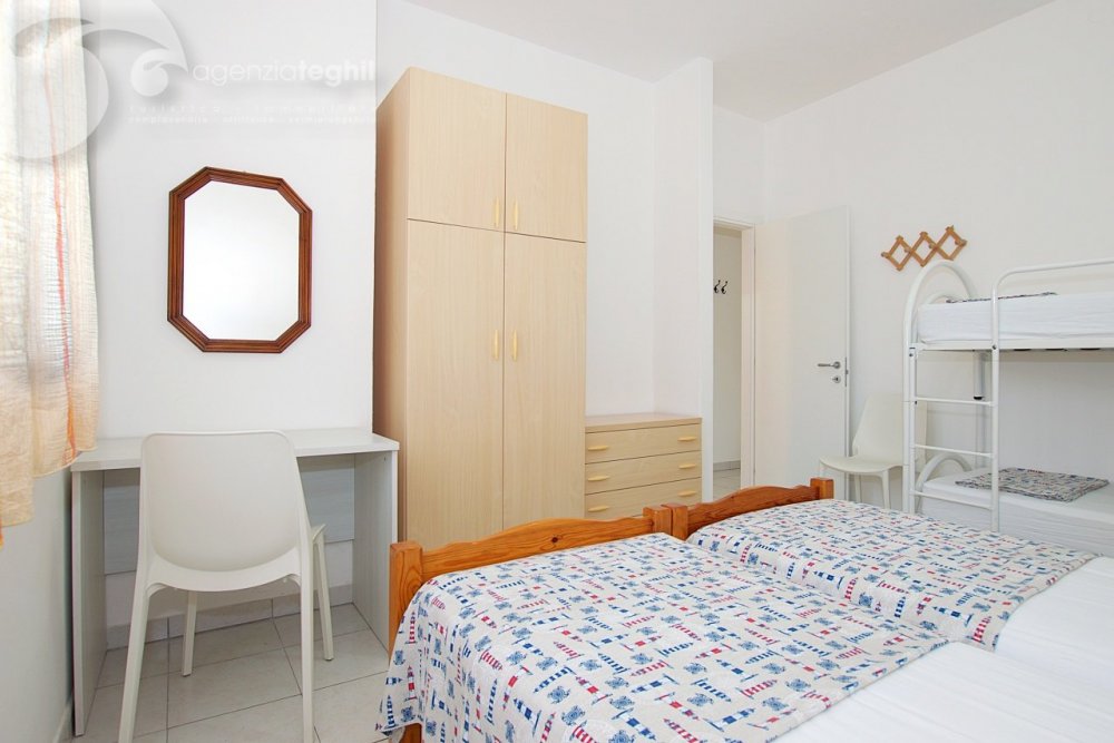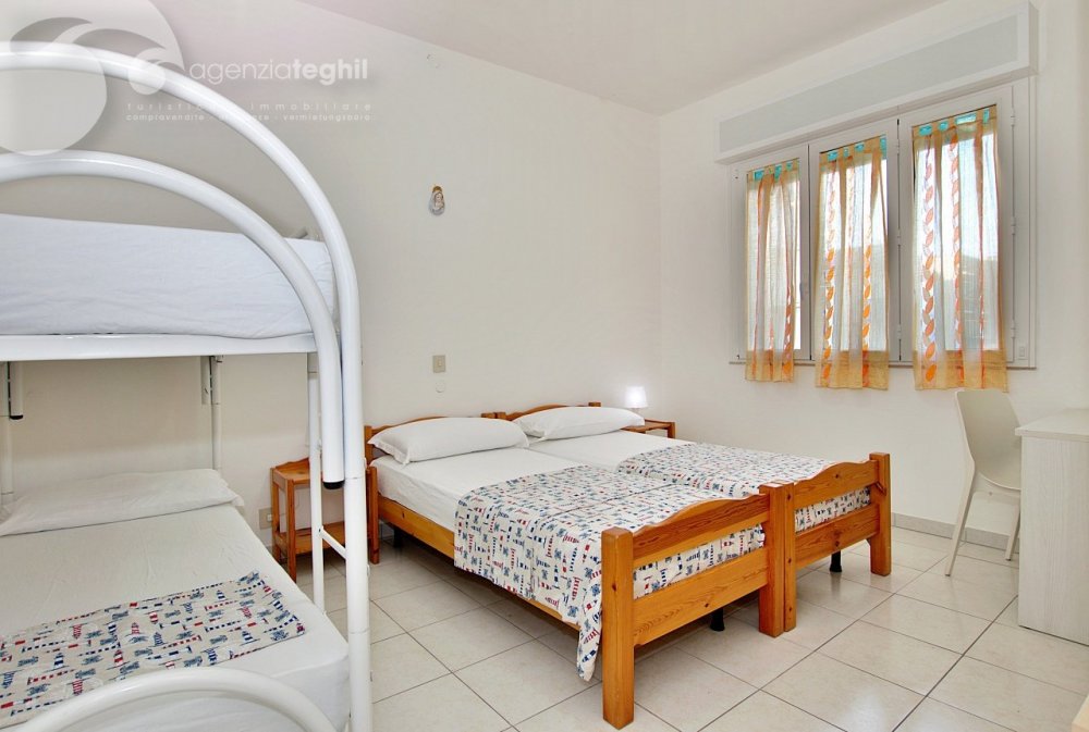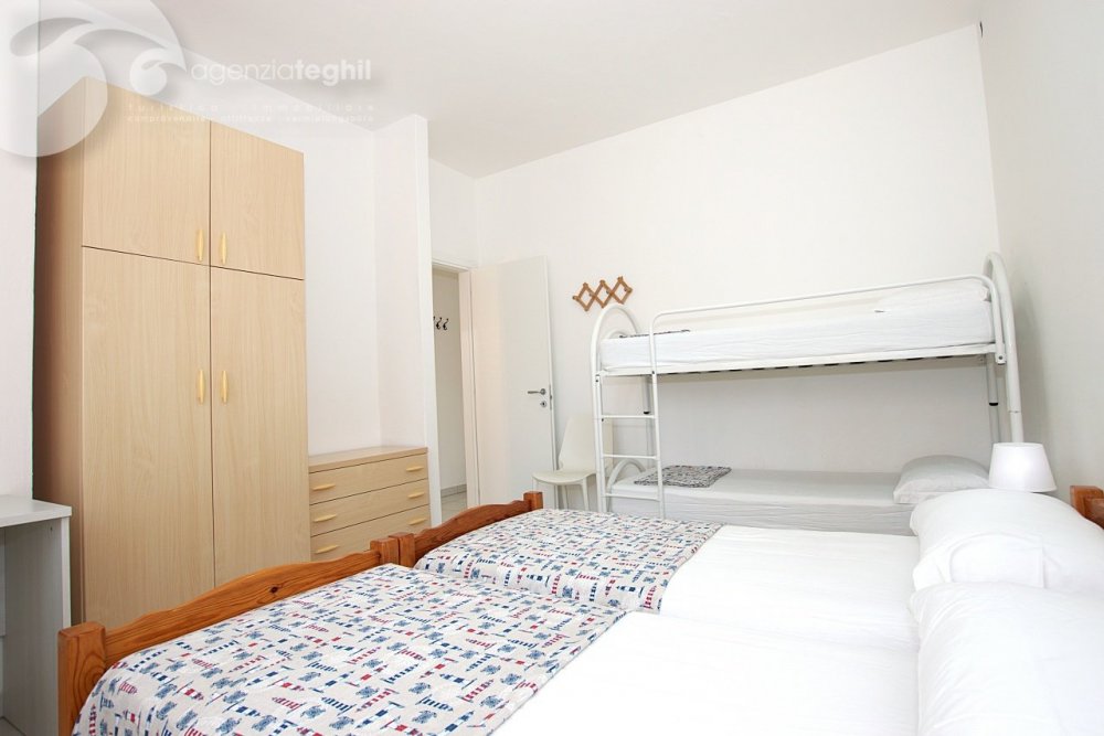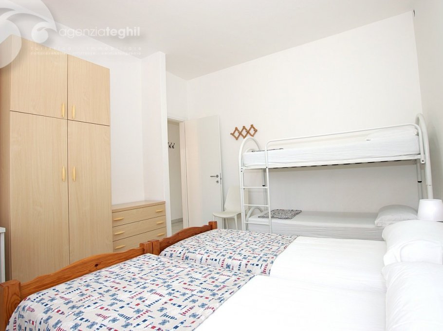 Tipo B - 4 persone: Appartamento al 2° piano (senza ascensore) di recente ristrutturazione. Composto da un' ampia camera con letto matrimoniale e un letto a castello, bagno finestrato con box doccia e dotato di boiler elettrico da 50 lt, soggiorno e televisione, angolo cottura con frigorifero da 240 lt (celletta freezer separata), poggiolo (in comune con l'appartamento a fianco).