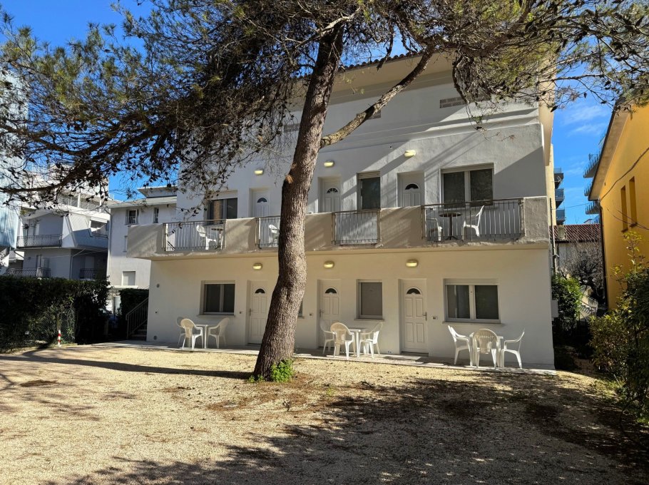 Due piccole palazzine in Via Miramare, a circa 200 metri dalla spiaggia, in una posizione tranquilla e centrale a Sabbiadoro, vicina a tutti i servizi.