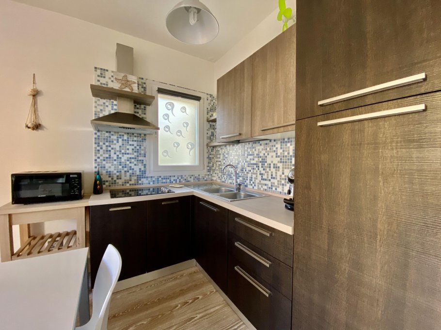 Moderno e confortevole appartamento situato al piano terra composto da soggiorno con divano letto, angolo cottura, camera con letto matrimoniale e letto a castello, bagno finestrato con doccia, piccolo scoperto di proprietà, posto auto. Con climatizzatore. CIN CODE: IT030049C22XHLNLAH
