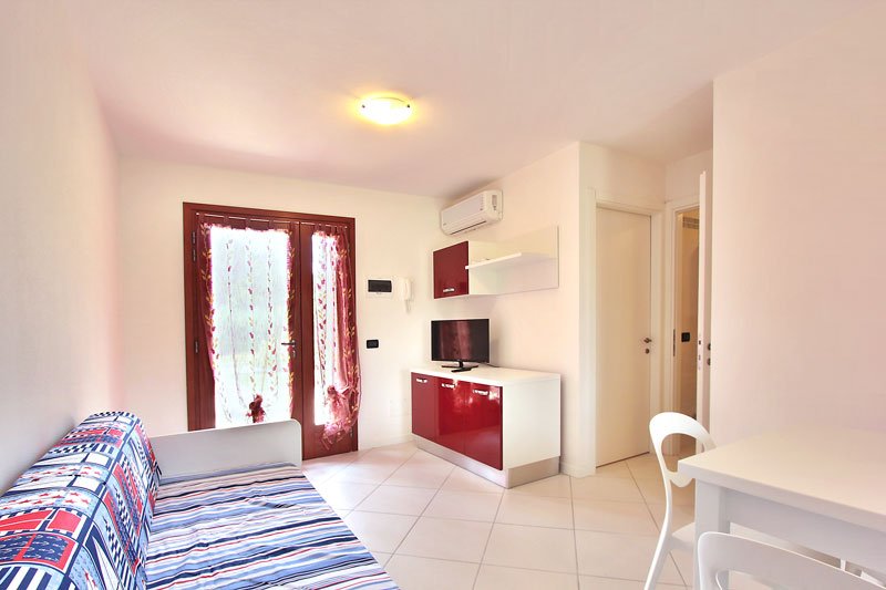 TIPO B Nuove ville composte da soggiorno con cucina a vista, divano letto. Bagno con box doccia, ampia camera matrimoniale con possibilità di 3° posto letto. Giardino. Patio. 1 posto auto privato. TV digitale, aria condizionata, lavatrice, lavastoviglie, microonde, cassaforte, asciugacapelli. Arredamento nuovo.