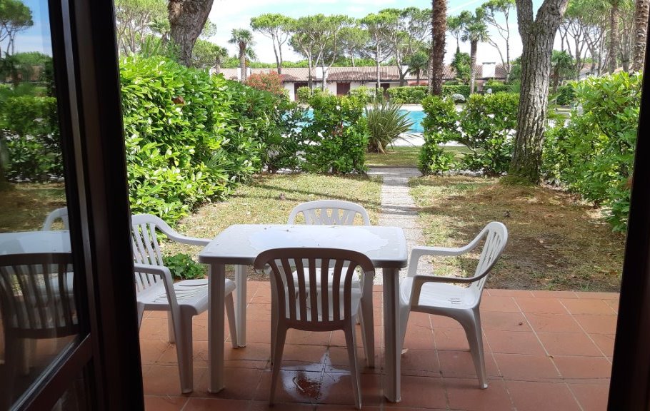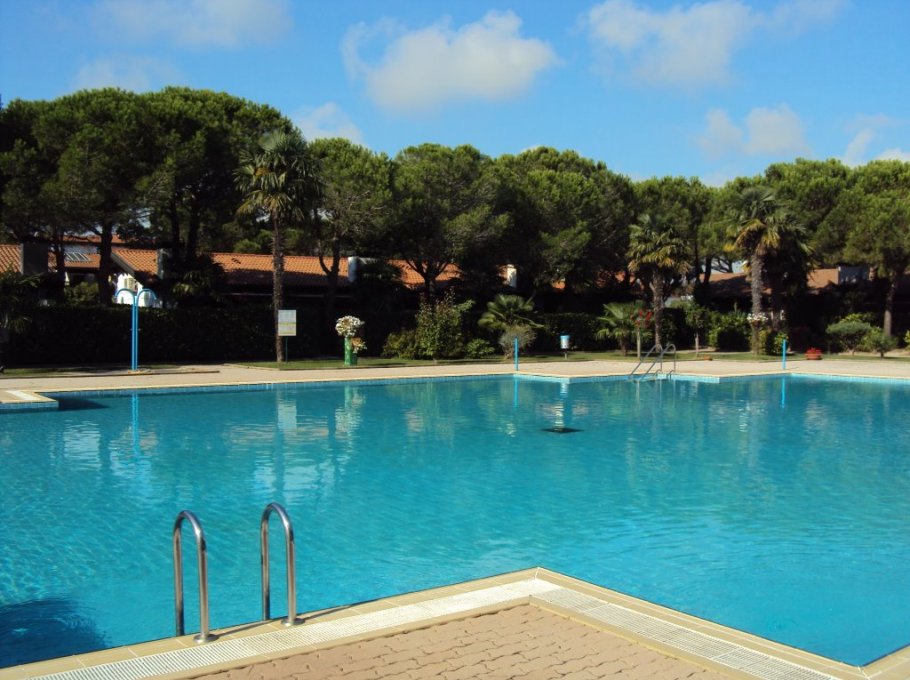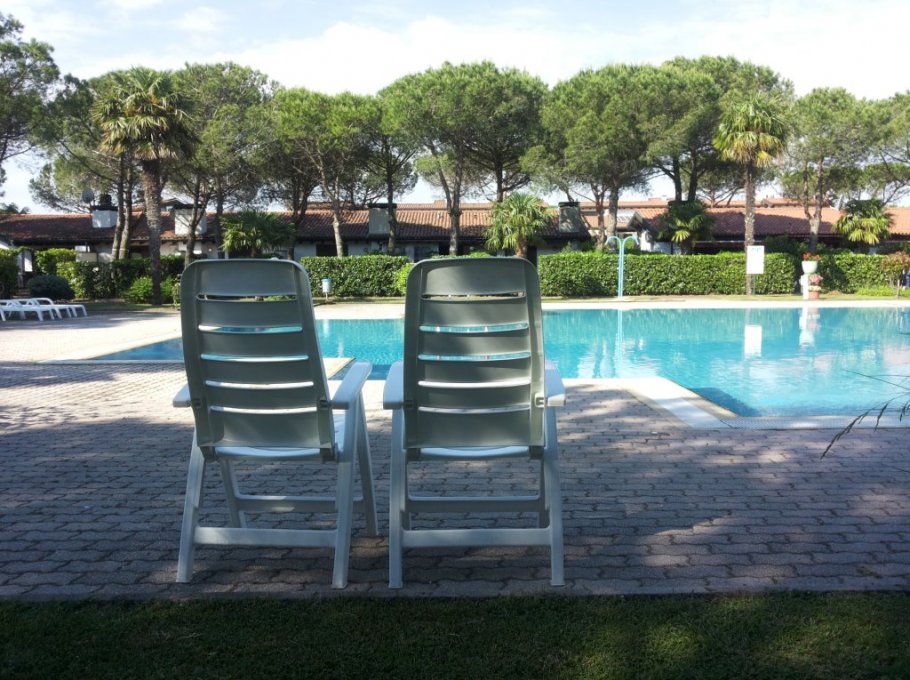 Villetta con vista piscina,si compone di:soggiorno con divano letto doppio,terrazzo con barbecue,camera matrimoniale,bagno,parcheggio e giardino privato .