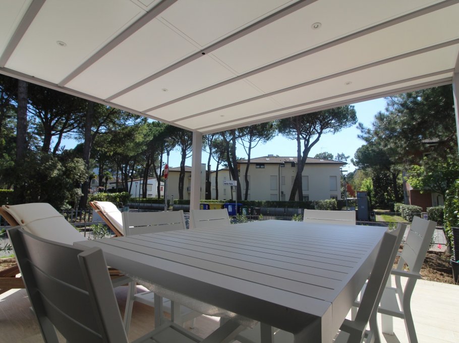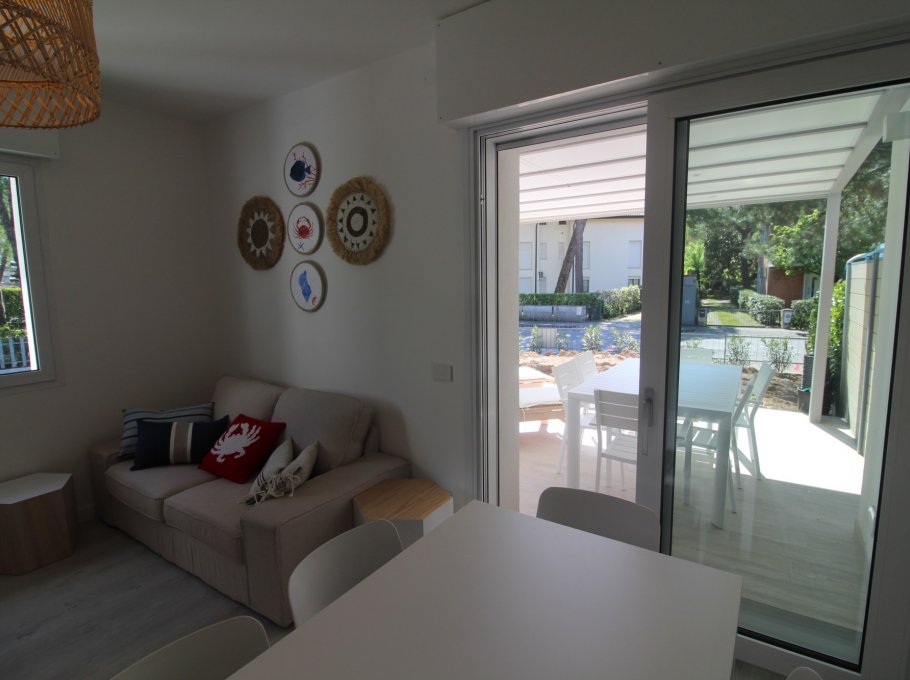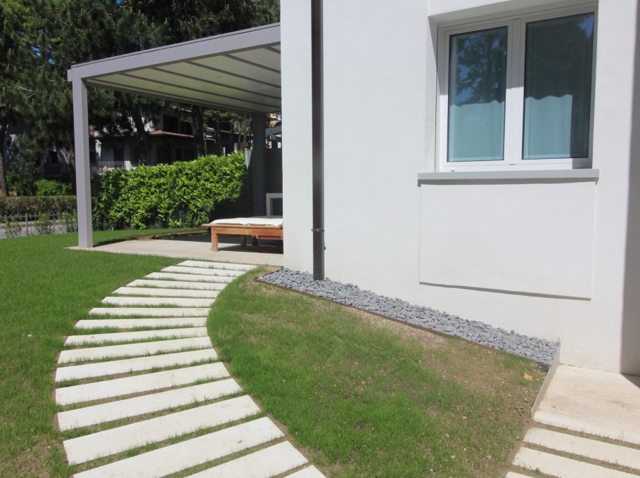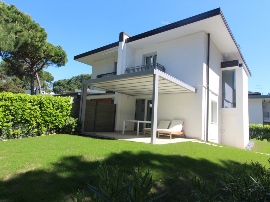 VILLETTA VELA DELUXE: villa bifamiliare completamente ristrutturata con giardino privato e recintato in zona verde e tranquilla, a Lignano Pineta, a ca. 250m dalla spiaggia.