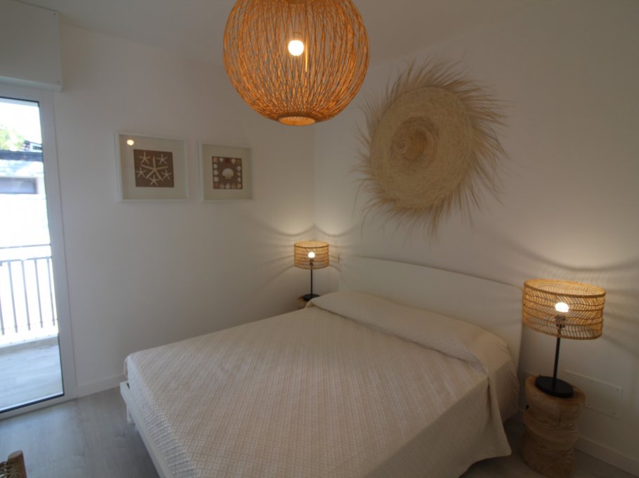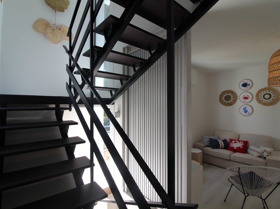 Tipo D2: completamente ristrutturata nel 2023. Al piano terra soggiorno-pranzo con divano, angolo cottura, 1 camera con letto singolo ed estraibile, un bagno con box doccia. Al piano superiore 1 camera con letto matrimoniale, 1 camera con 2 letti singoli, entrambe le stanze con balcone. 1 bagno con doccia. Per 5-6 persone. Indicato per famiglie con bambini - aria condizionata - lavastoviglie - lavatrice - colonnina per la ricarica delle auto elettriche.