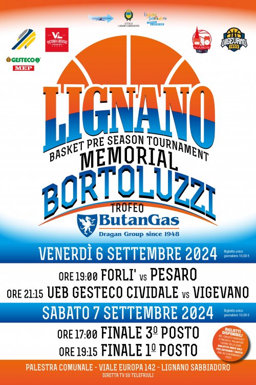 Venerdì 6 e sabato 7 Settembre il Palazzetto Comunale di Lignano Sabbiadoro ospita il Memorial Bortoluzzi, prestigioso torneo di basket pre season.