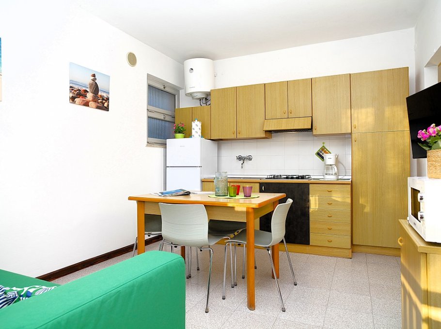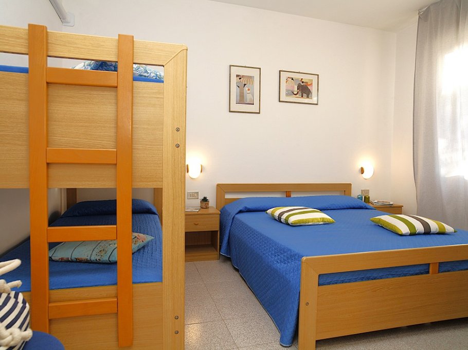 TWO-ROOM APARTMENT for 4 persons, composed of: living room with kitchen corner, 1 bedroom with double bed and 1 bunk- bed, bathroom, terrace. Air conditioning.