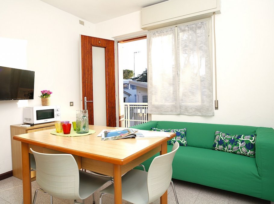 Just 300 mt. from the sea, house with 11 apartments, located in a green area. All apartments, with simple and functional furnishings, are equipped with air conditioning, TV, safe, large fridge with cell and numbered parking. Nearby food shop, bars and restaurants.