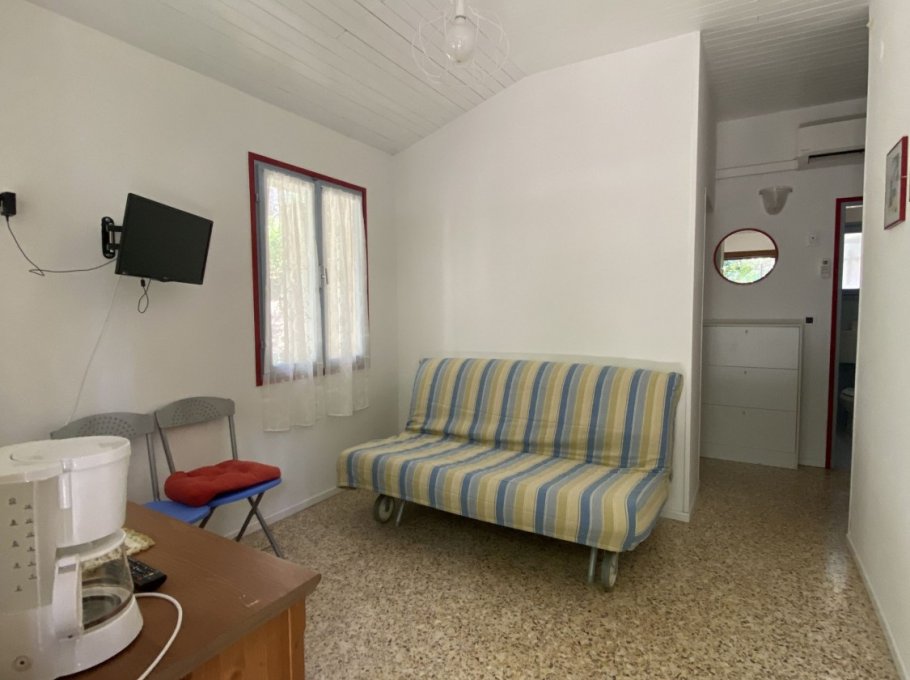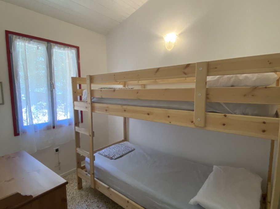 THREE-ROOM-APARTMENT for 6 persons composed of: living-room with 1 divan-bed, kitchen corner, 1 bedroom with 1 double-bed and 1 bedroom with 1 bunk-bed, small garden area, bathroom. Air-conditioning. Numbered parking –place.