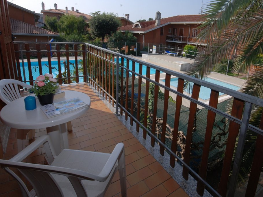 Recent and elegant holiday complex outskirts Lignano Sabbiadoro, about 900 m from the beach, and situated in a large green area with swimming-pool. It is composed of 5 different buildings with apartments and row-houses on two floors with inside stairway. Simple furnished apartments with balcony or with private garden, TV. 1 numbered parking-place for each apartment. Swimming pool open with Covid protocol from early June to mid-September.