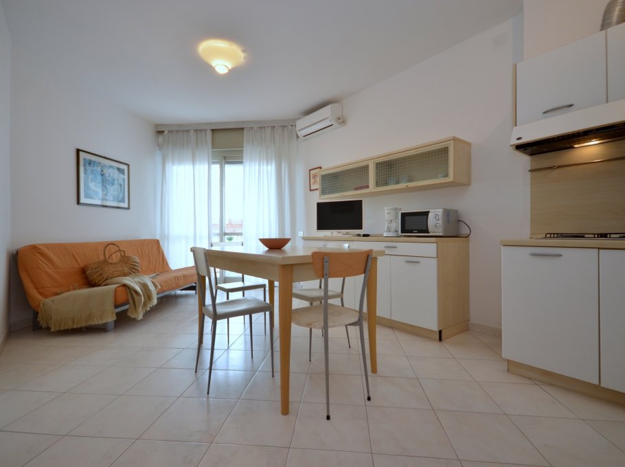 TWO-ROOM-APARTMENT for 2-4 persons composed of: living-room with double divan-bed, 1 bedroom with double bed, kitchen corner, bathroom, balcony. Airconditition