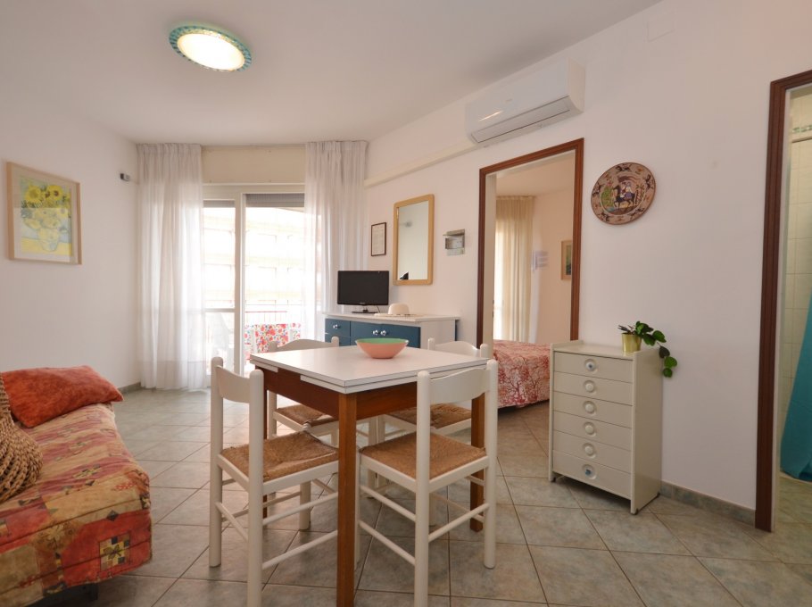TWO-ROOM-APARTMENT for 3-5 persons composed of: living-room with double divan-bed, 1 bedroom with double bed and single bed or single pull-out bed, kitchen corner, bathroom, balcony. Air conditioning.
