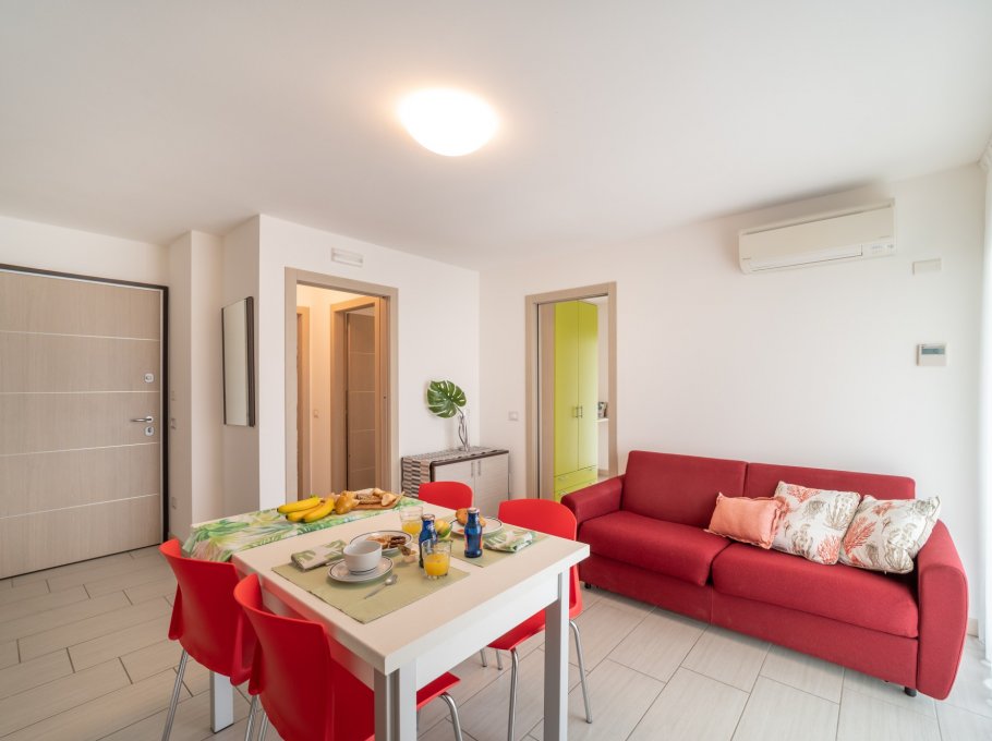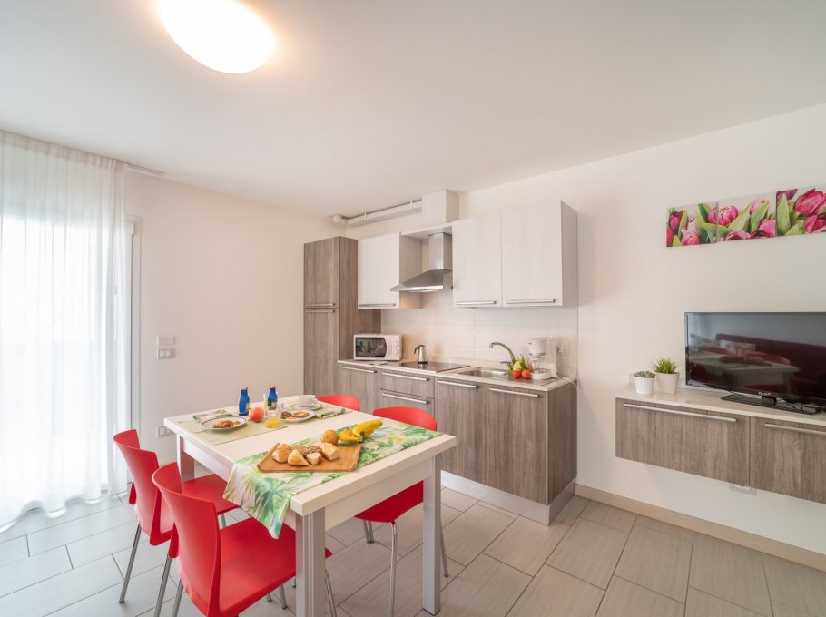 New and elegant building about 400 meters from the beach and a short walk from the pedestrian center of Lignano Sabbiadoro. It's composed of 15 apartments on 6 floors and has a lift and 1 parking-place for each apartment. All apartments have large balconies and from the 4th floor have wonderful views of the lagoon. The furnishing is modern and every apartment is equipped with Sat-tv, central air conditioning, dish-washer, washing-machine, micro-wave, safe. Parking-places (high approx. 224 cm and width 218 cm).